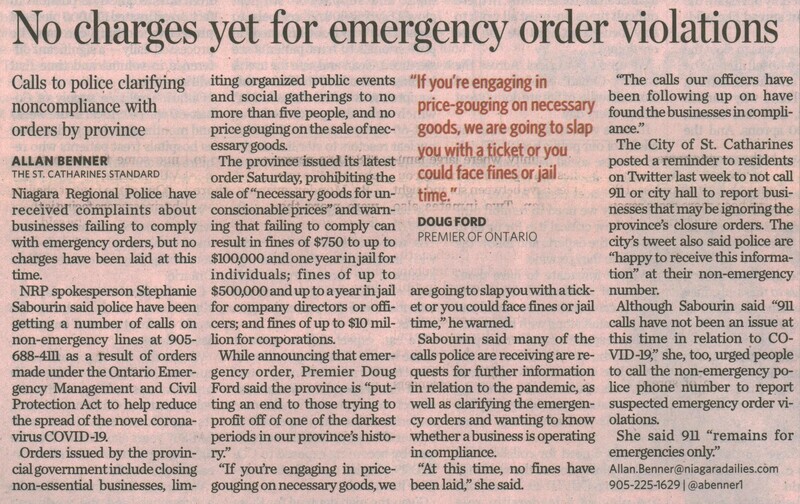 - No charges yet for emergency order violations : calls to police clarifying noncompliance with orders by province