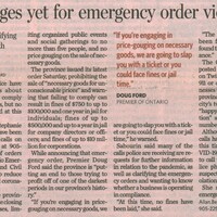 No charges yet for emergency order violations : calls to police clarifying noncompliance with orders by province