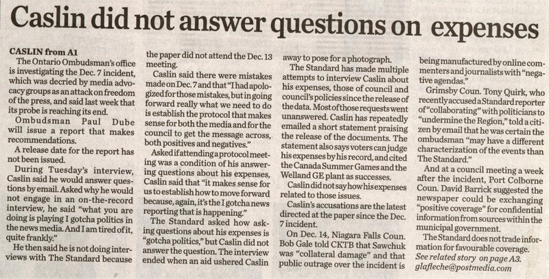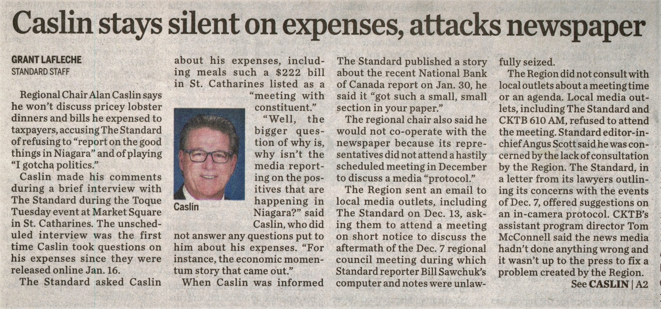 - Caslin stays silent on expenses, attacks newspaper