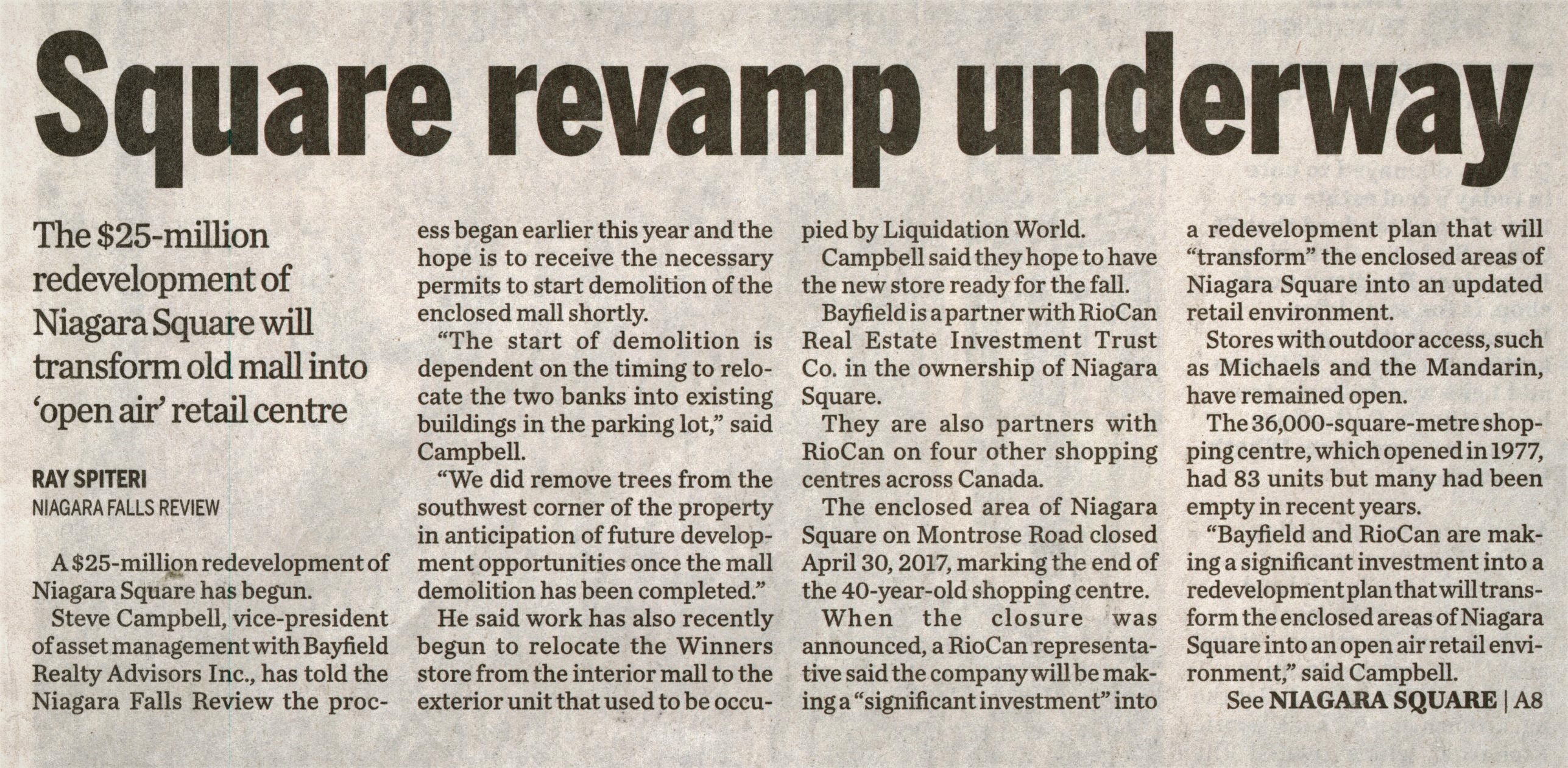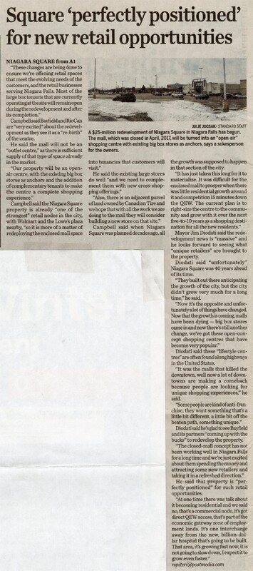 - Square revamp underway : the $25-million redevelopment of Niagara Square will transform old mall into open air retail centre