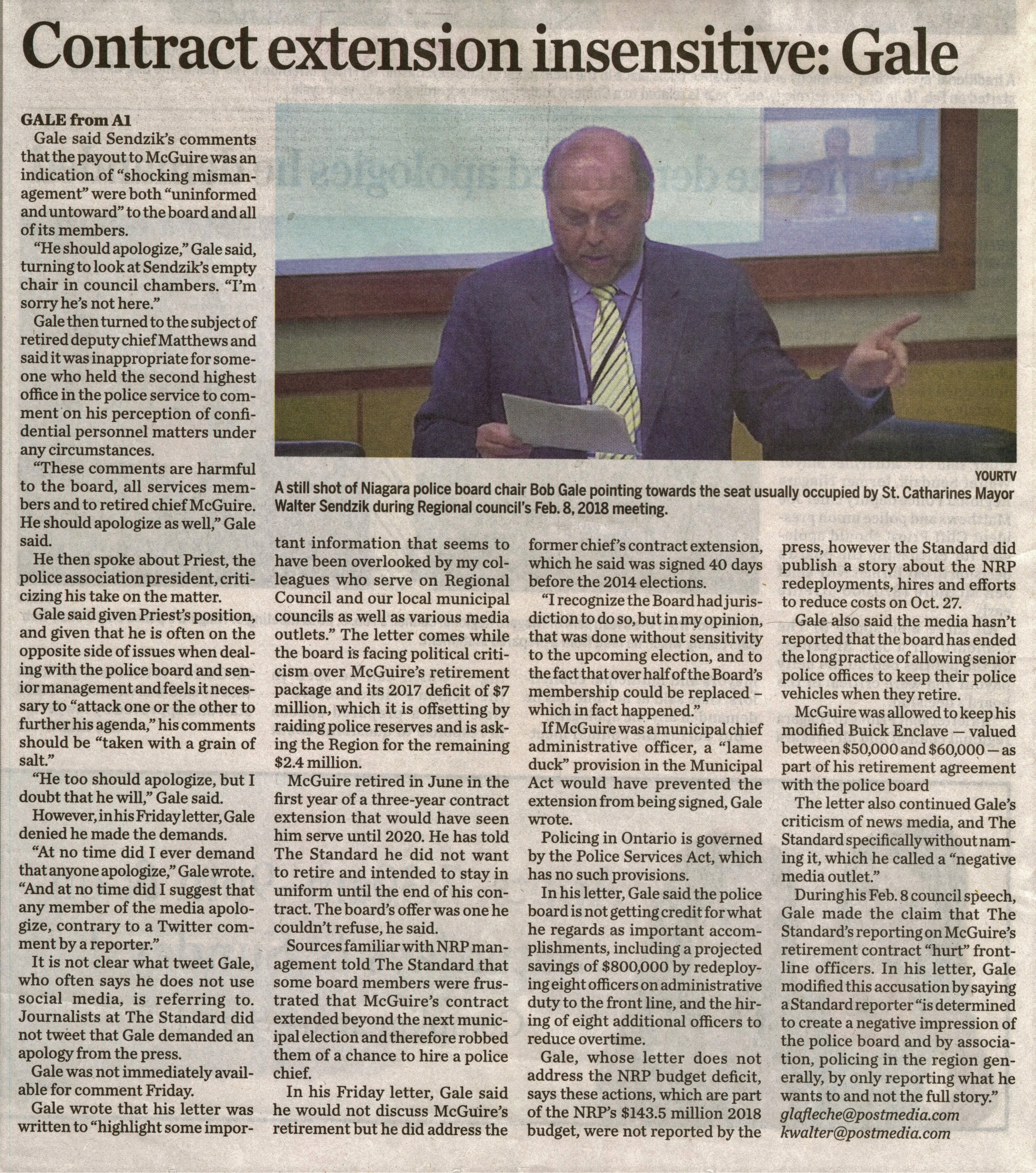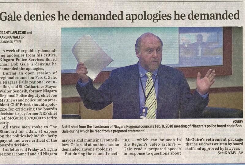 - Gale, Bob / Niagara Regional Police Board / McGuire, Jeff / Sendzik, Walter / Matthews, Joe / Priest, Cliff
