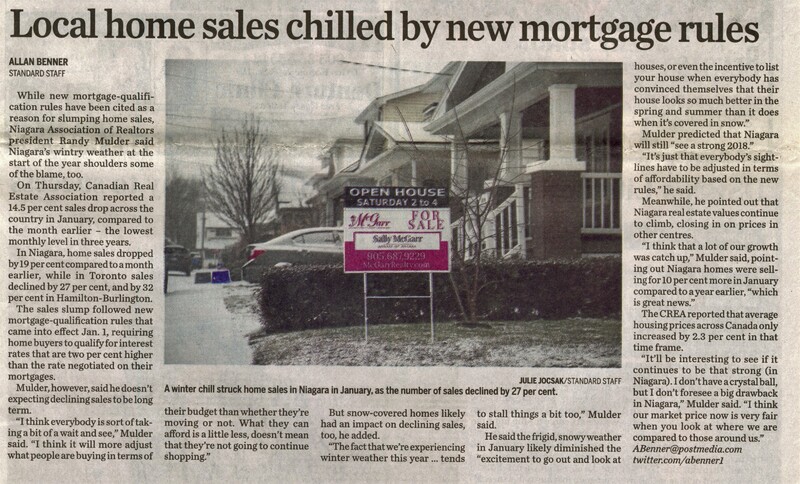 - Local home sales chilled by new mortgage rules