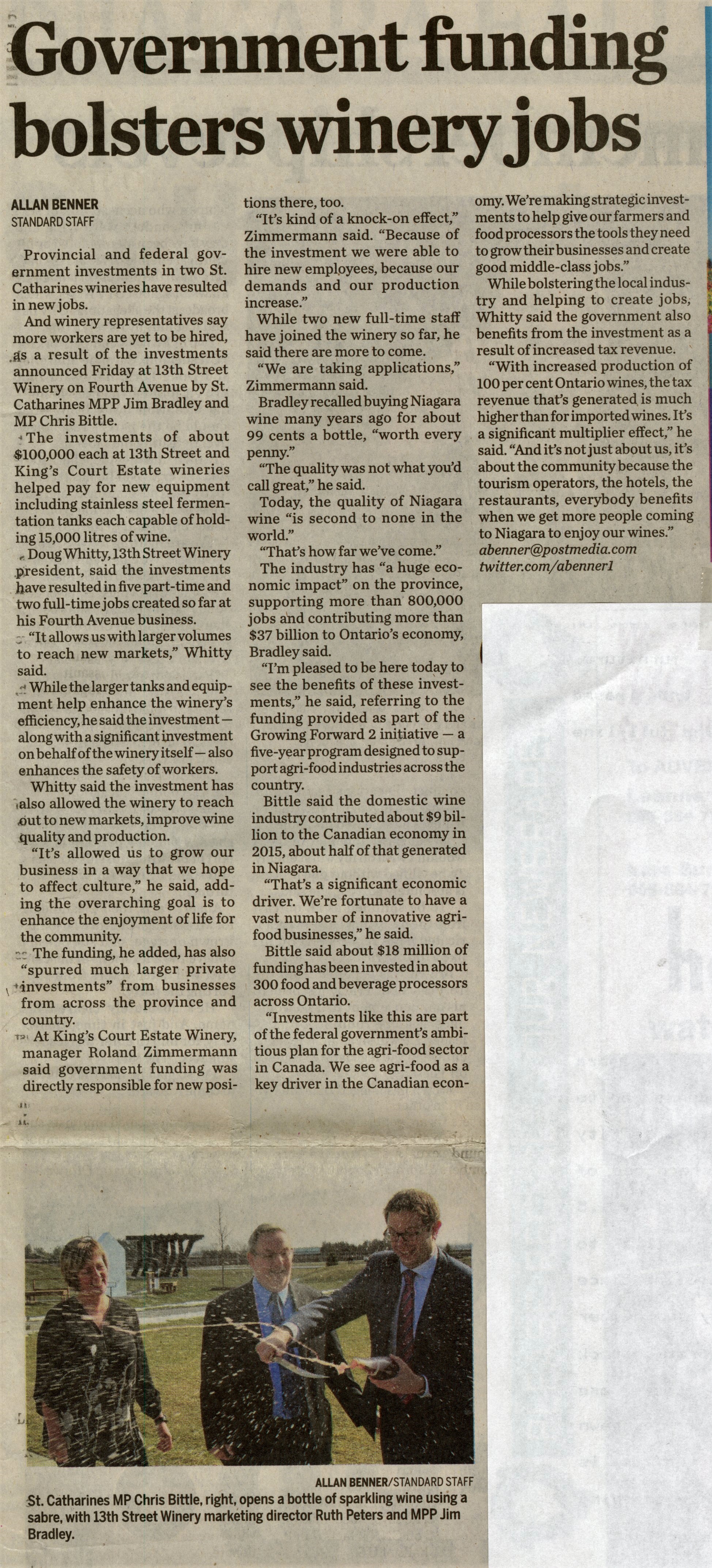Government funding bolsters winery jobs