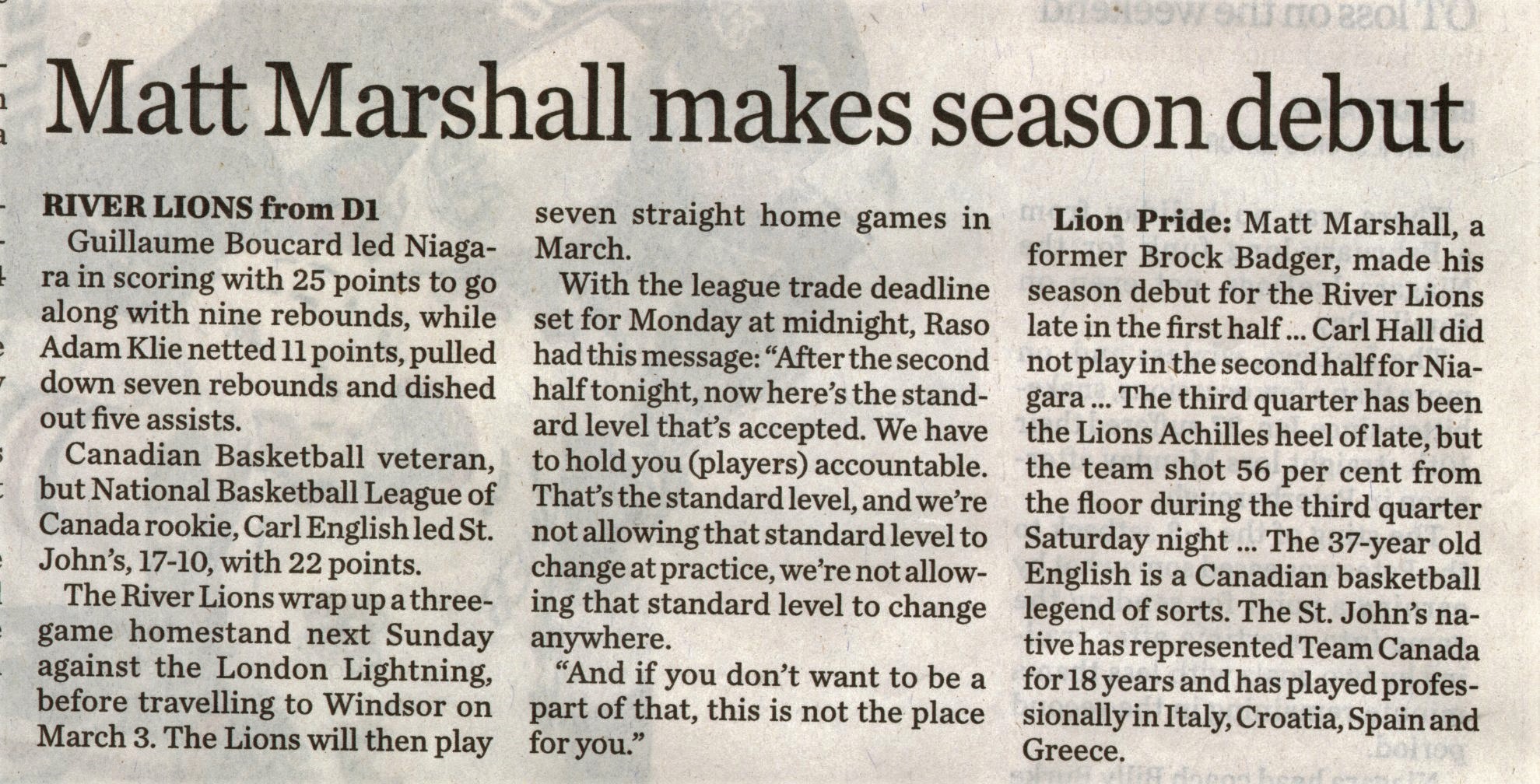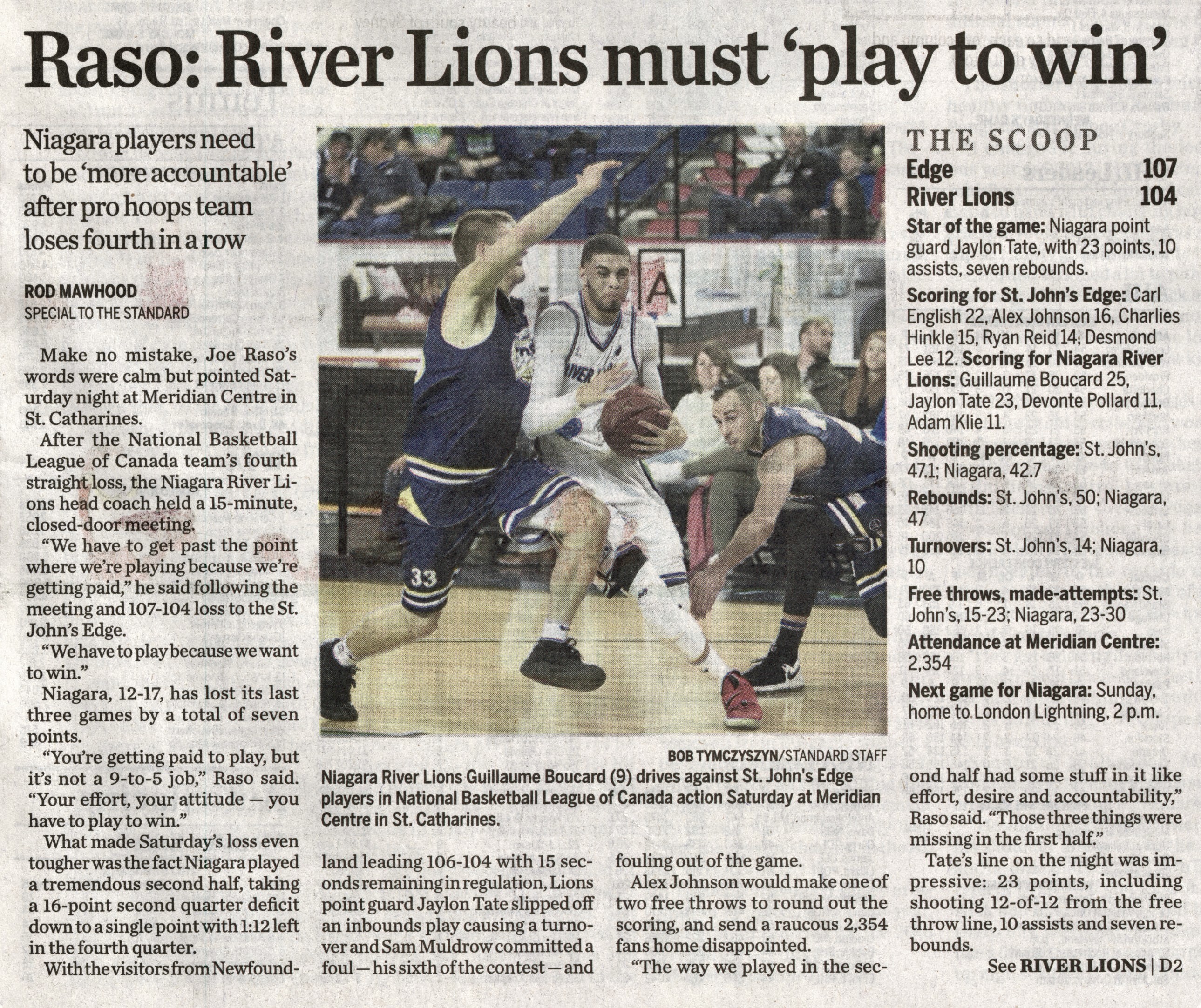 - Raso : River Lions must play to win : Niagara players need to be more accountable after pro hoops team loses fourth in a row