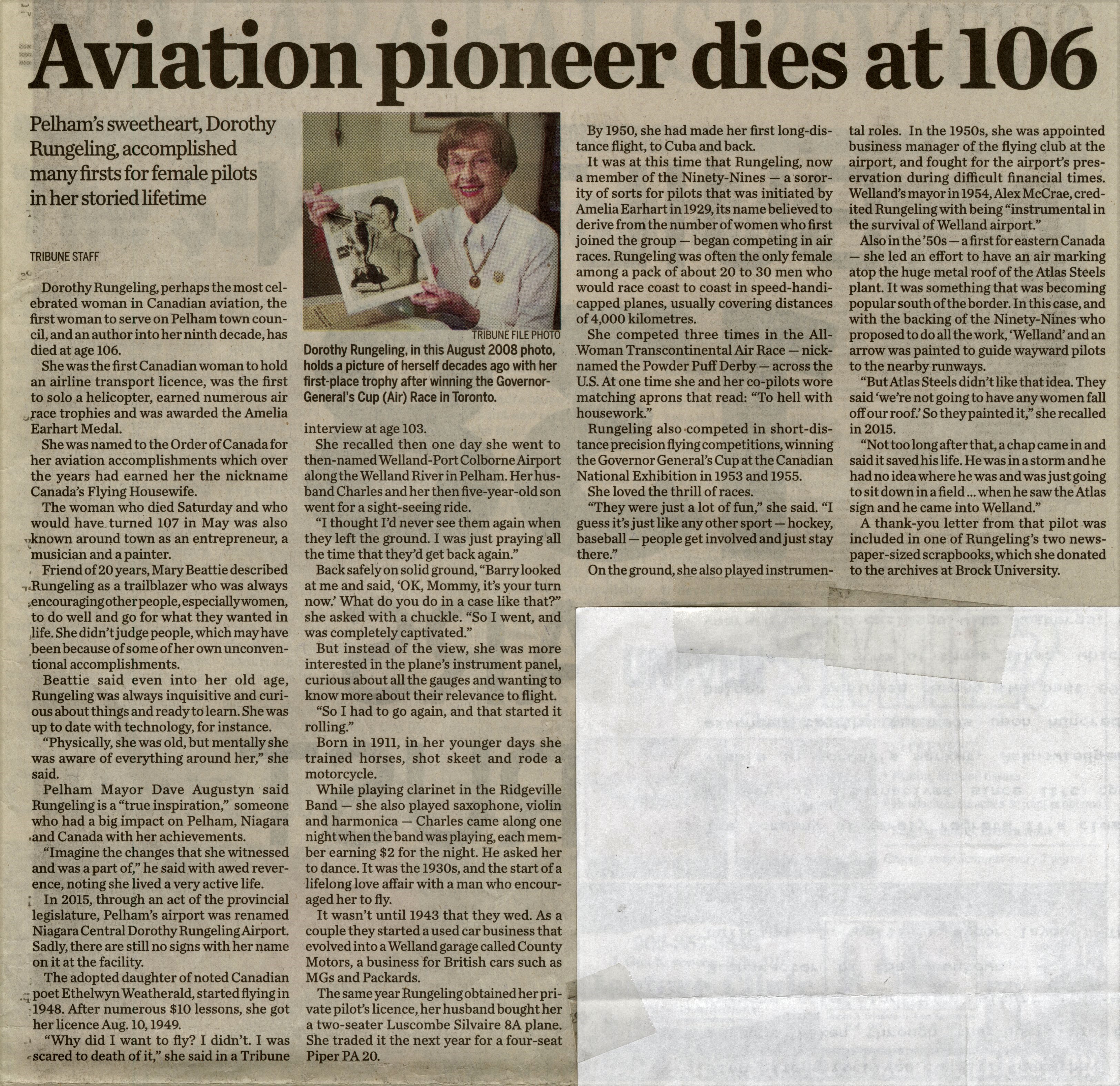 - Aviation pioneer dies at 106 : Pelham's sweetheart, Dorothy Rungeling, accomplished many firsts for female pilots in here storied lifetime