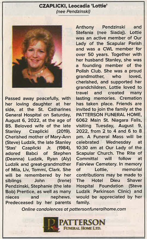 - Czaplicki, Leocadia (Lottie) (nee Pendzinski)