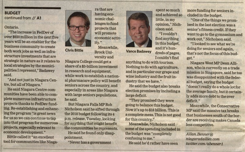 - Nicholson, Rob / Allison, Dean / Bittle, Chris / Badawey, Vance