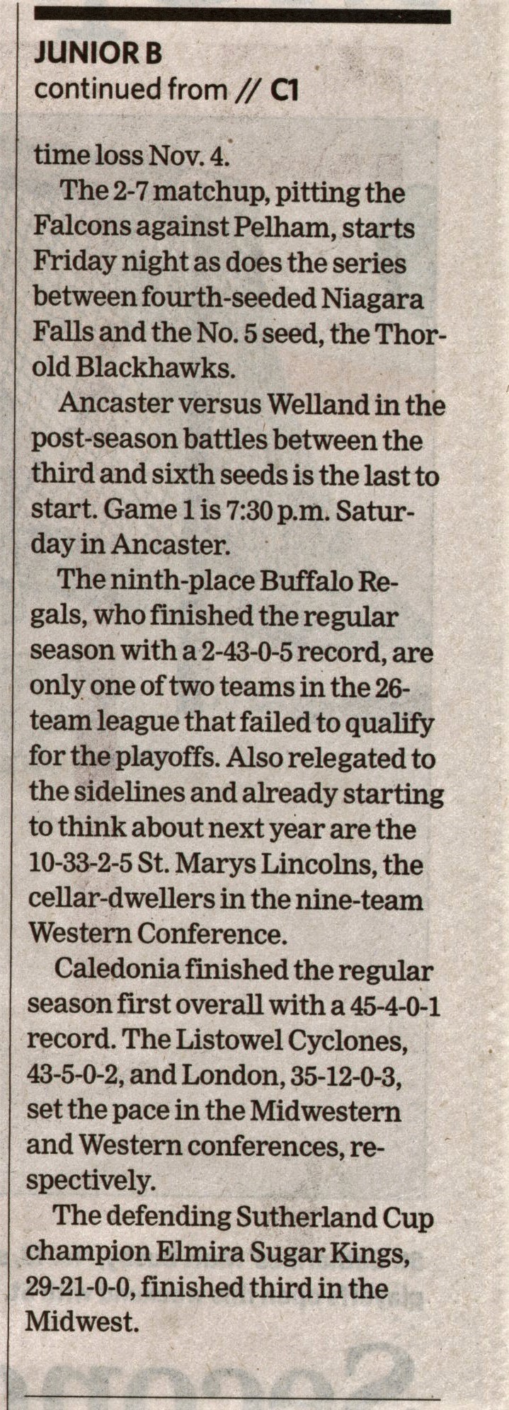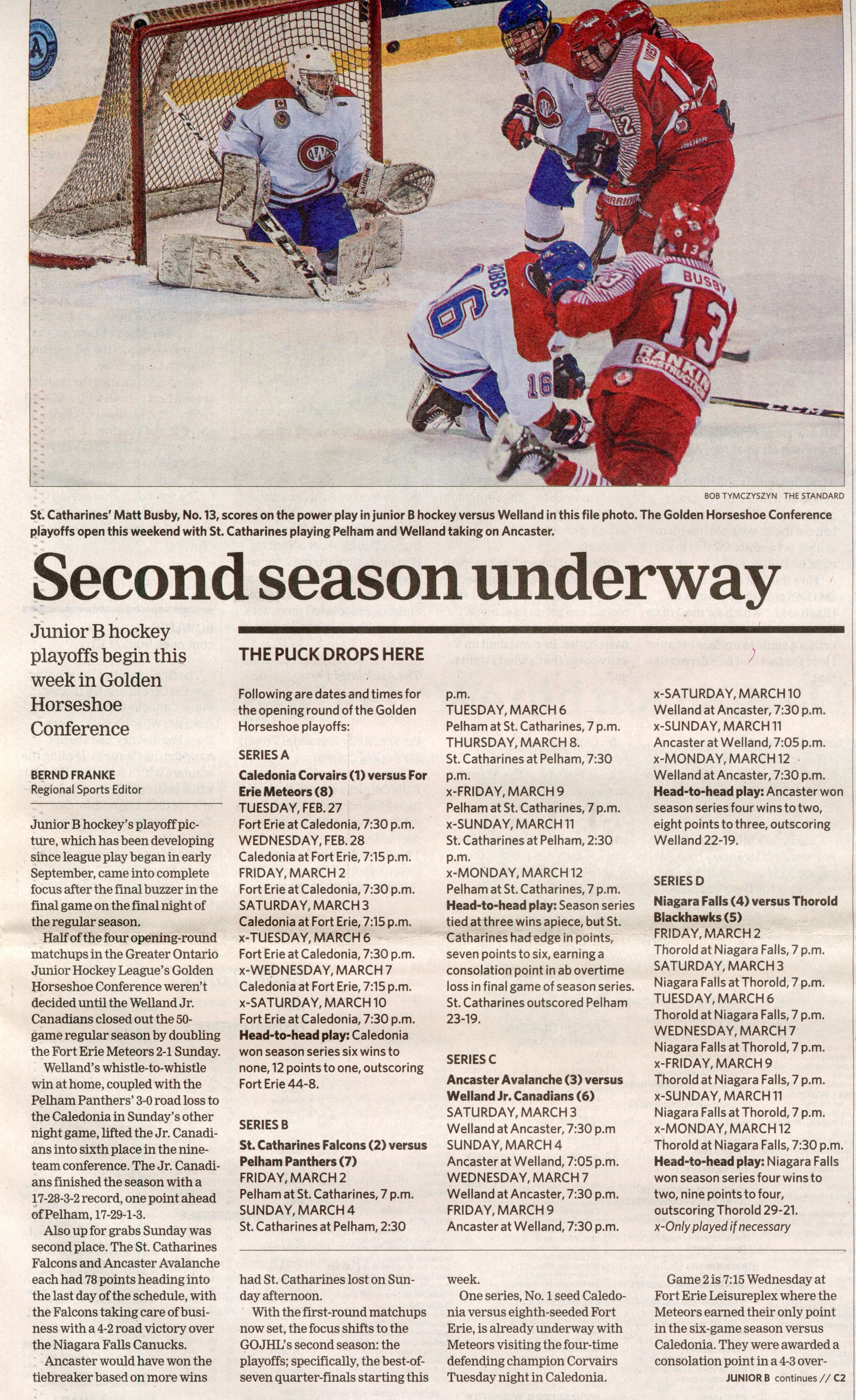 - Second season underway : Junior B hockey playoffs begin this week in Golden Horseshoe Conference