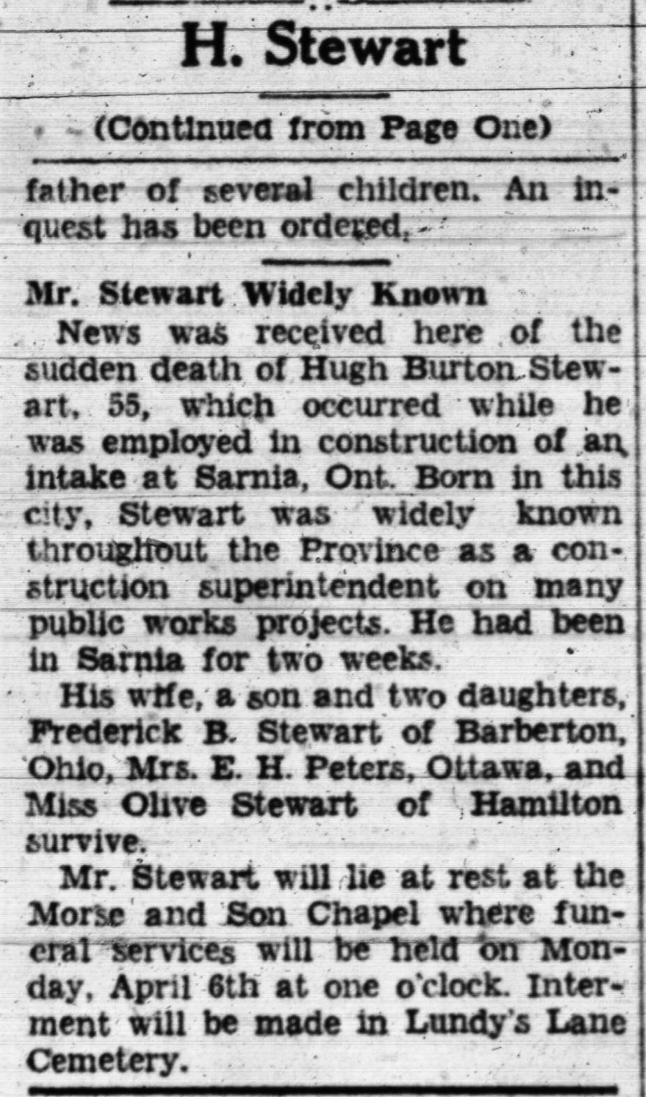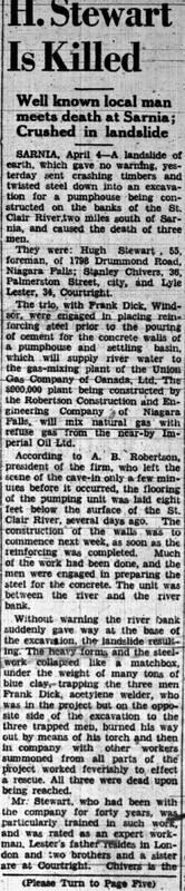 H Stewart is killed : Well known local man meets death at Sarnia ; Crushed in landslide
