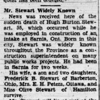 - H Stewart is killed : Well known local man meets death at Sarnia ; Crushed in landslide