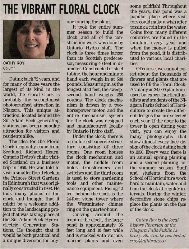 - Niagara Falls Public Library / Floral Clock / Sir Adam Beck / Hearn, Richard / Ontario Hydro / Niagara Parks School of Horticulture