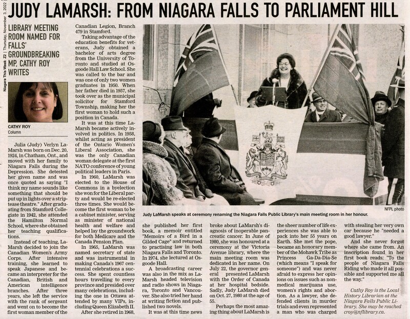 - Judy LaMarsh : From Niagara Falls to Parliament Hill