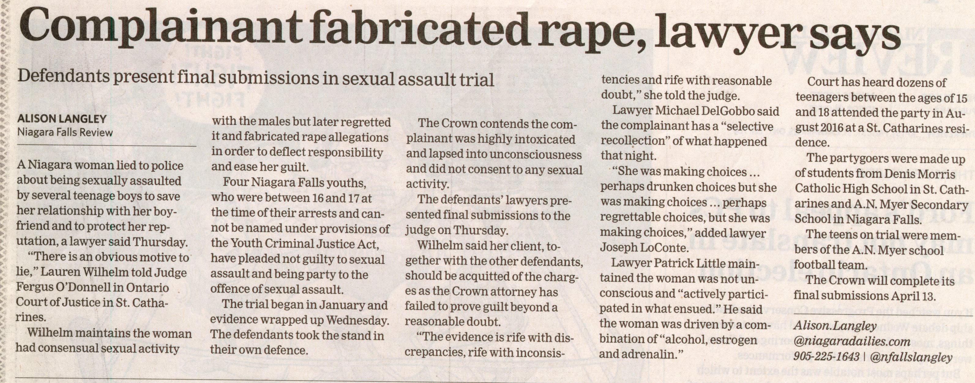 - Complainant fabricated rape, lawyer says : defendants present final submissions in sexual assault trial