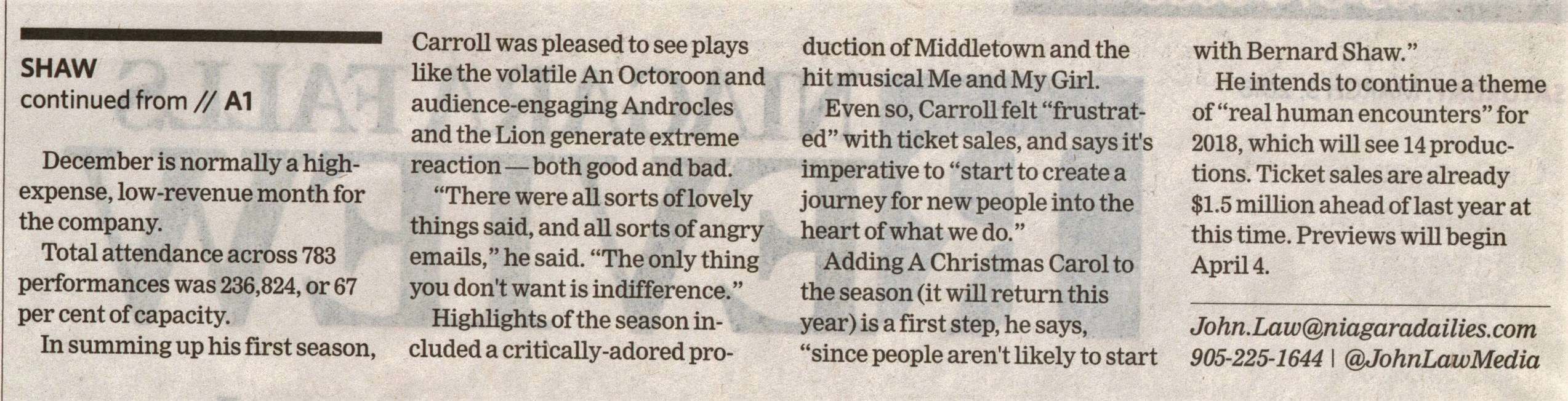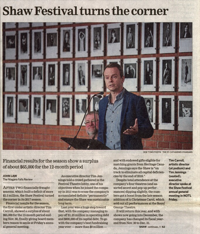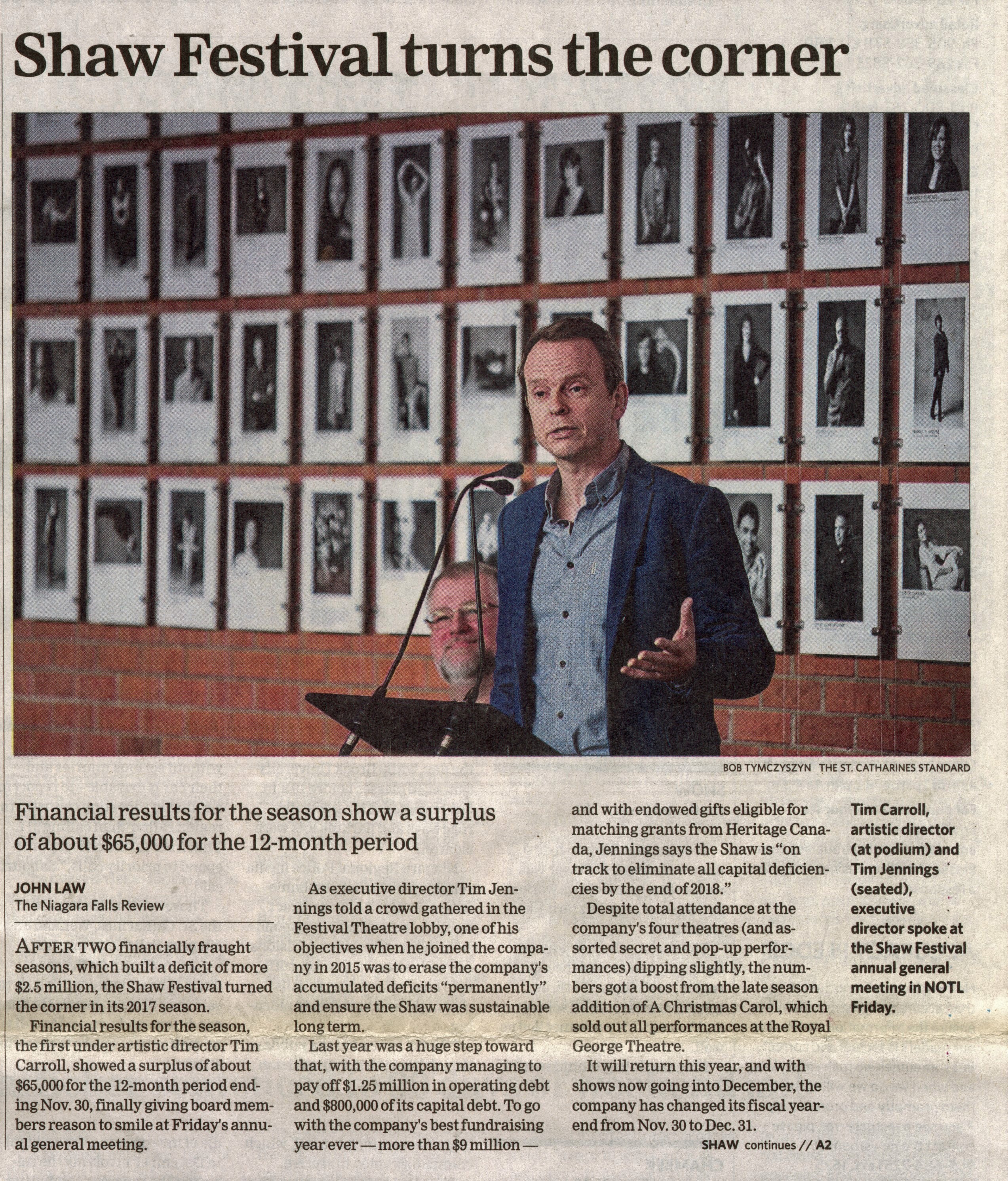 - Shaw festival turns the corner : financial results for the season show a surplus of about $65,000 for the 12-month period