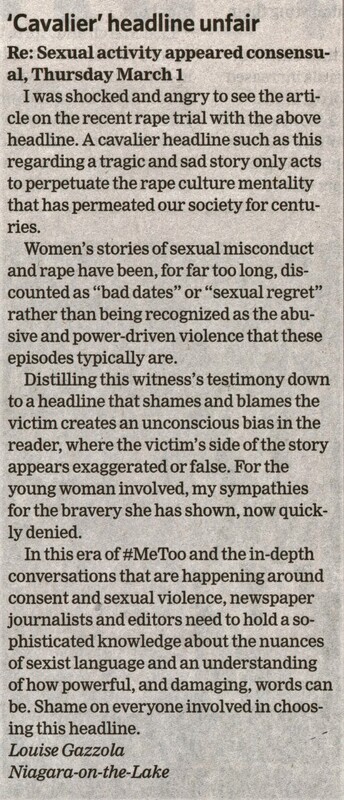 - Cavalier headline unfair : re Sexual activity appeared consensual, Thursday March 1