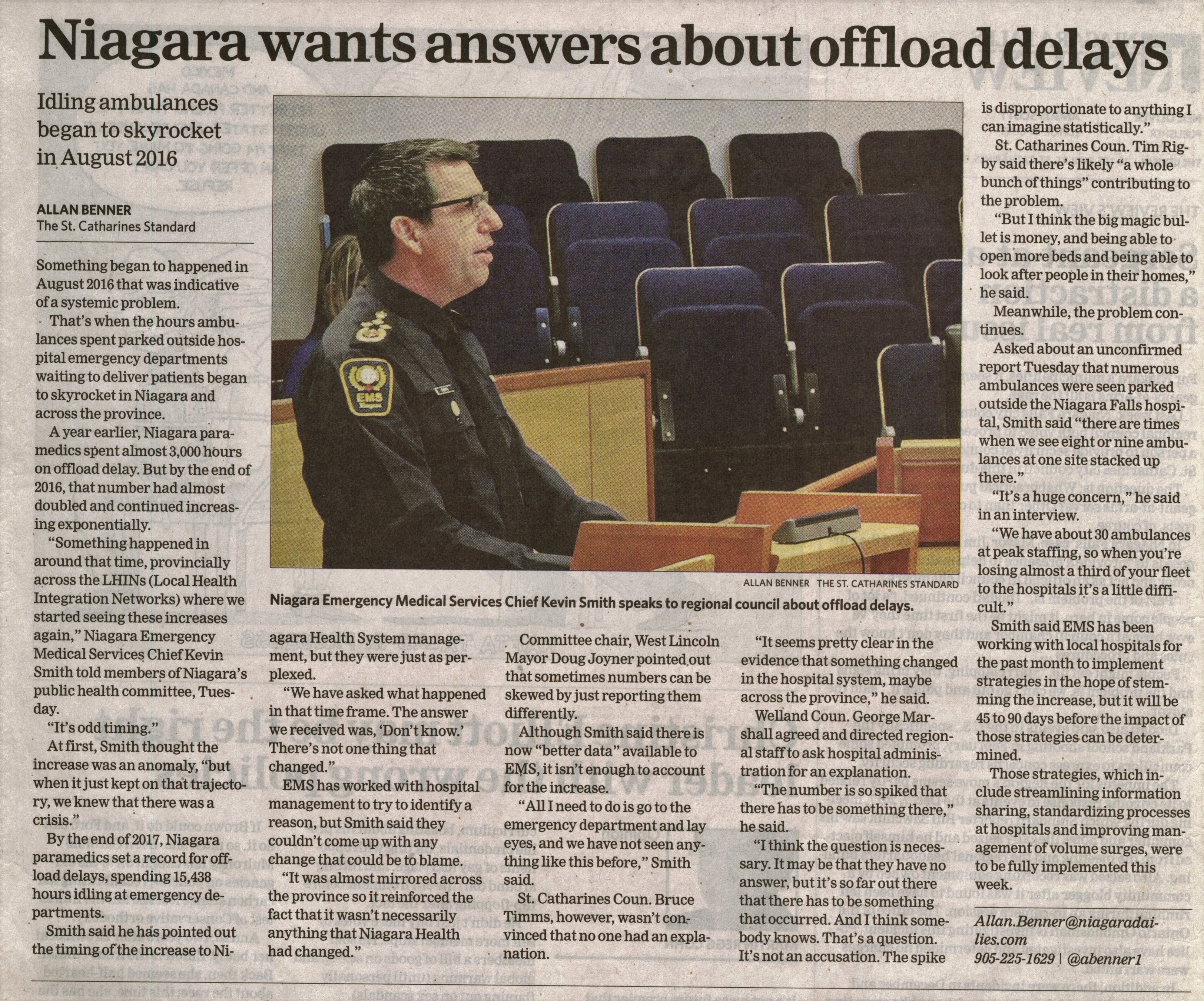 - Niagara wants answers about offload delays : idling ambulances began to skyrocket in August 2016