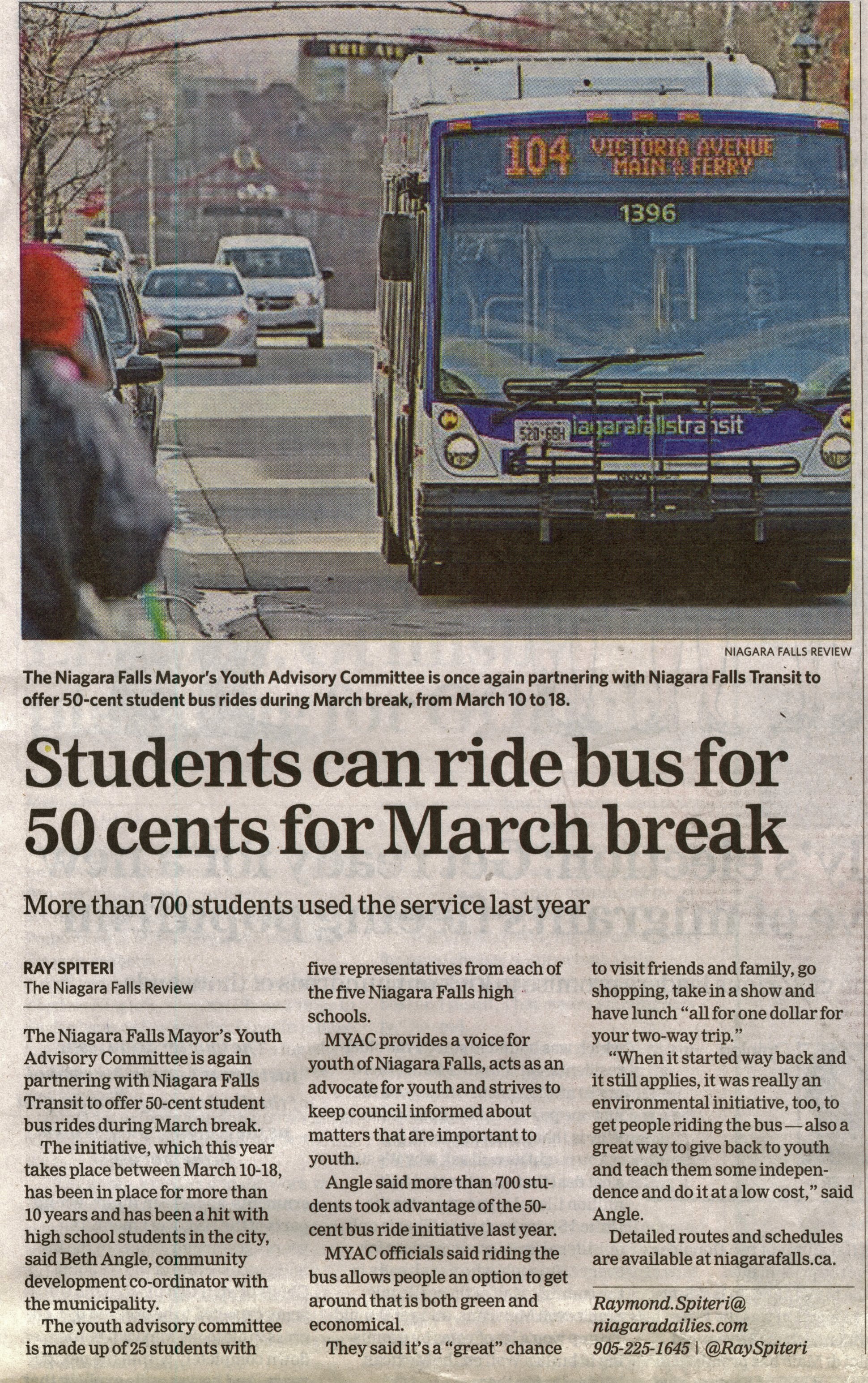 - Students can ride bus for 50 cents for March break : more than 700 students used the service last year