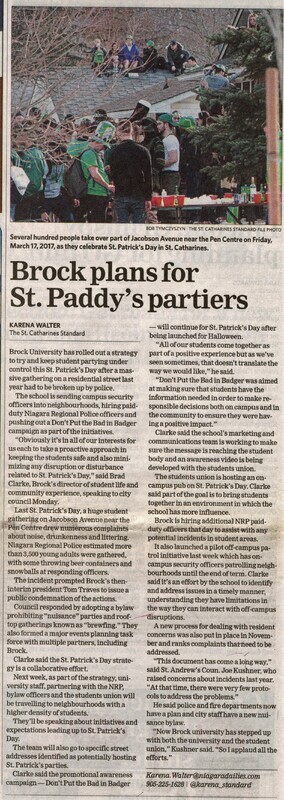Brock plans for St. Paddy's partiers