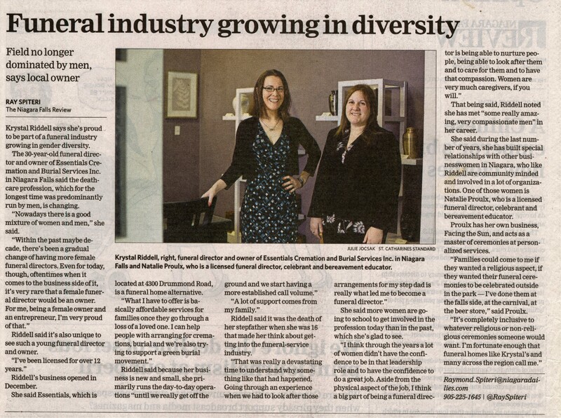 - Riddell, Krystal / Proulx, Ntalie / Essentials Cremation and Burial Services Inc.