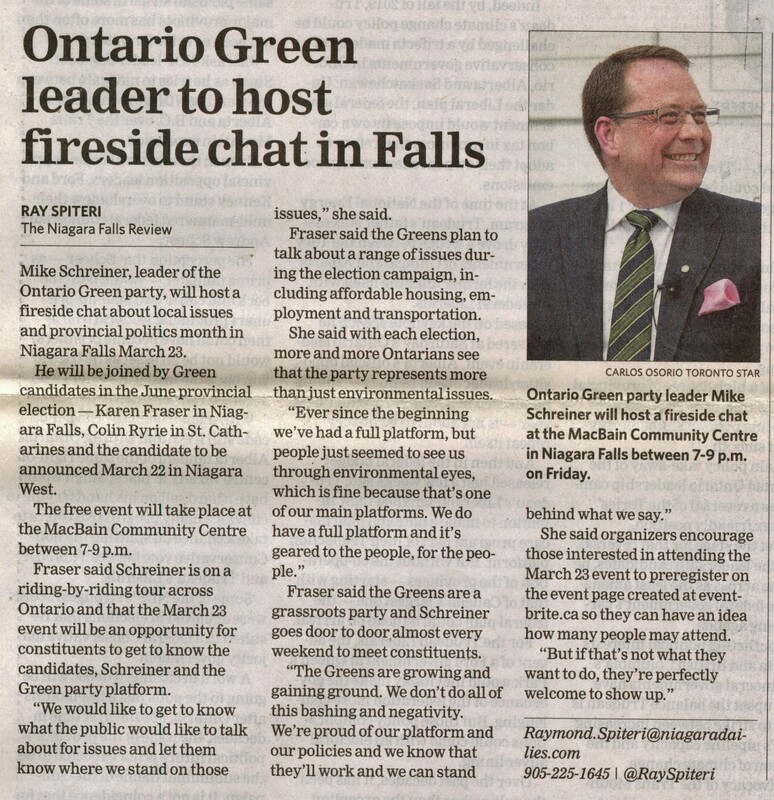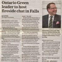 - Ontario Green leader to host fireside chat in Falls