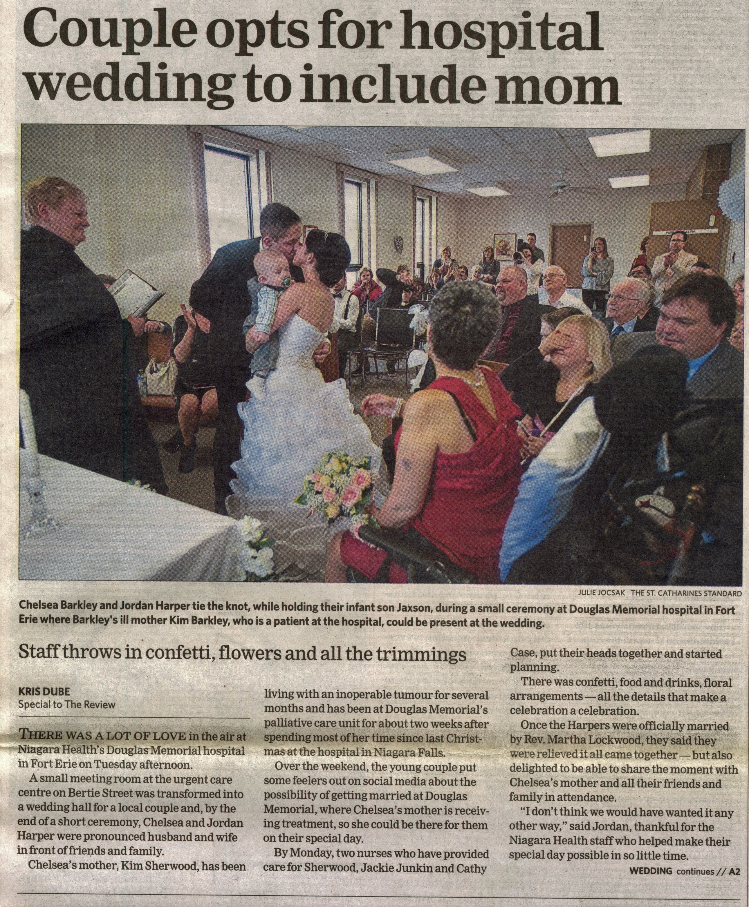 Couple opts for hospital wedding to include mom : staff throws in confetti, flowers and all the trimmings