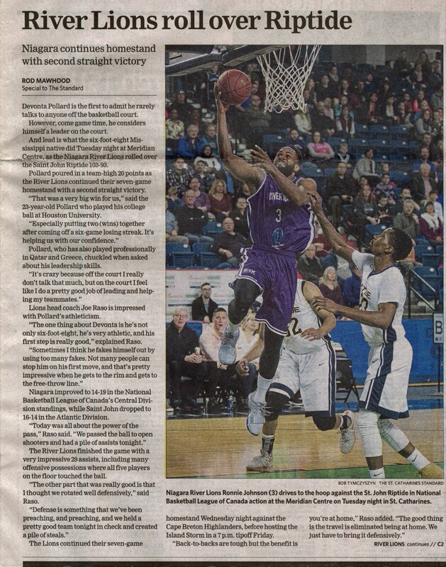 - River Lions roll over Riptide : Niagara continues homestand with second straight victory