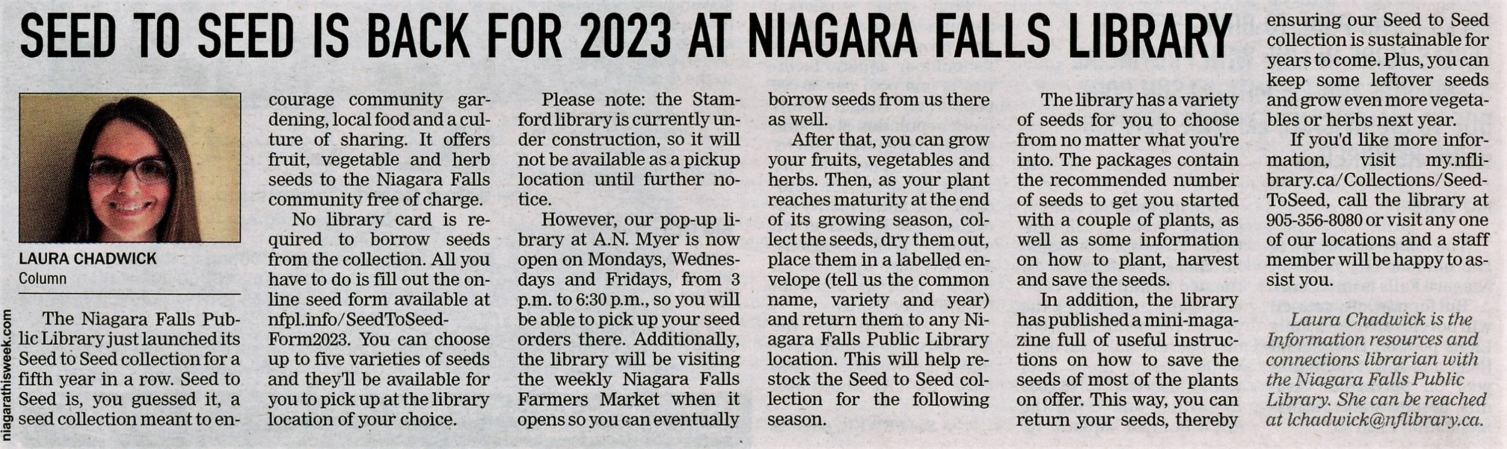 - Seed to Seed is back for 2023 at Niagara Falls Library
