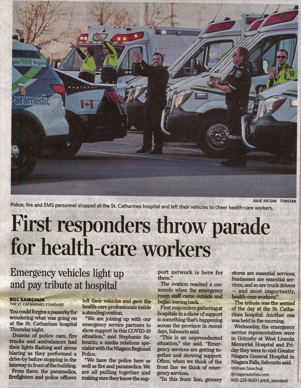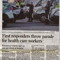 - First responders throw parade for health-care workers : Emergency vehicles light up and pay tribute at hospital