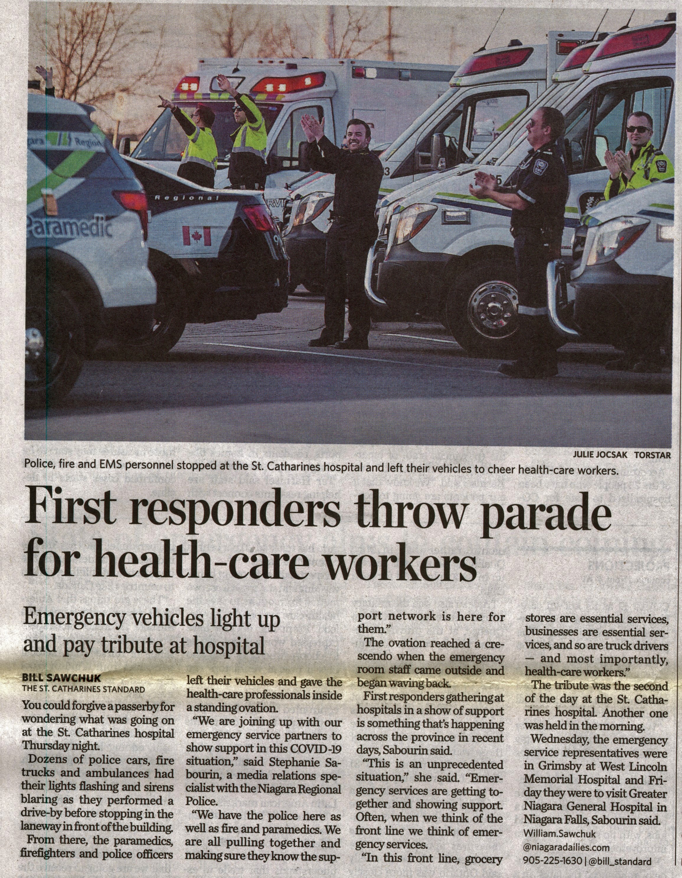 First responders throw parade for health-care workers : Emergency vehicles light up and pay tribute at hospital