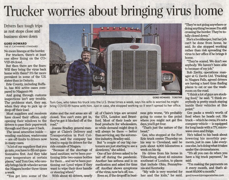 Gee, Tom / Claires Delivery and Transportation / Bradley, Joanne / Zavitz, Rob / Zavitz Trucking / COVID-19 pandemic /