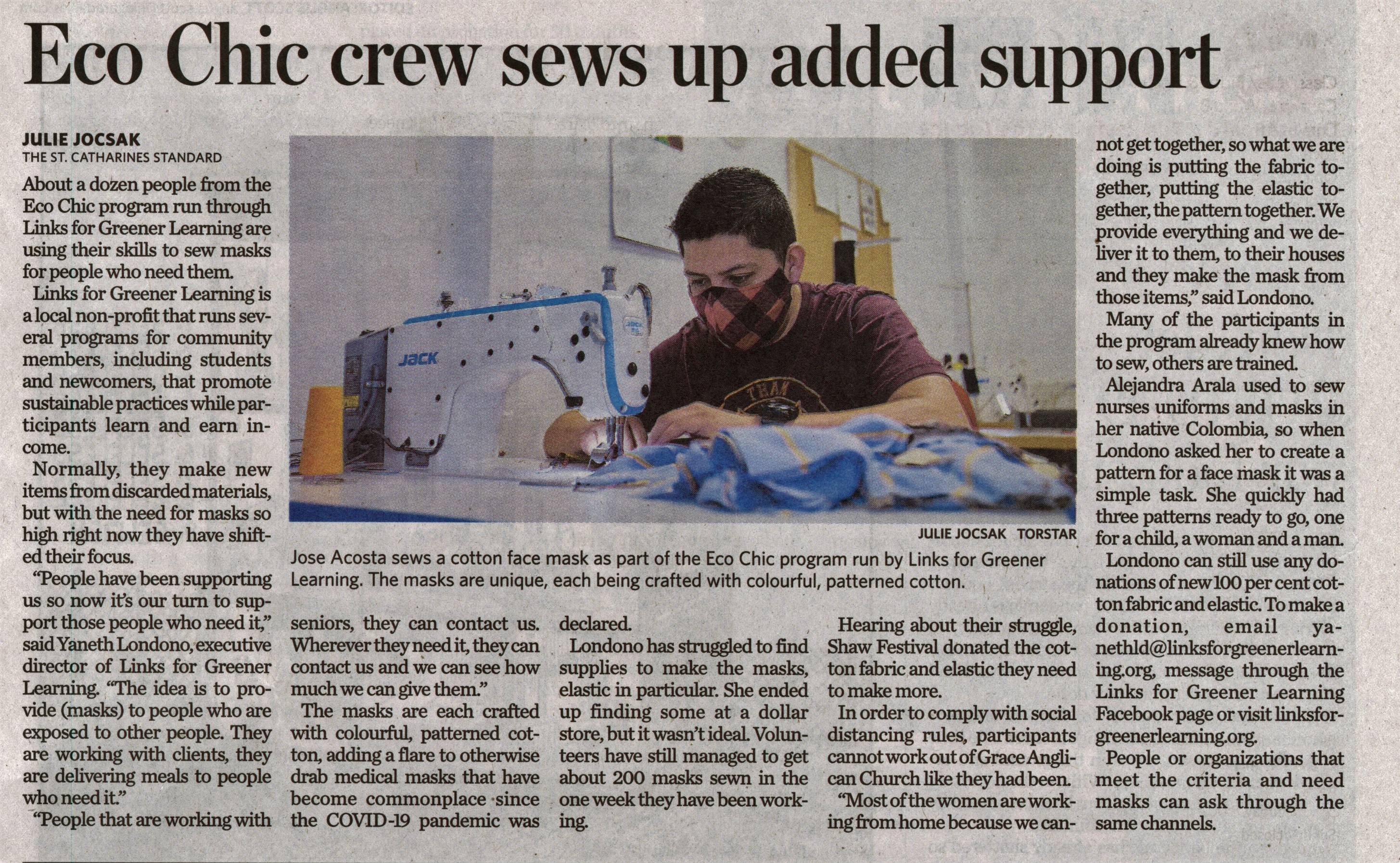 - Links for Greener Learning / Londono, Yaneth / Acosta, Jose / non profit / sewing masks / delivering meals / working with seniors / COVID-19 pandemic