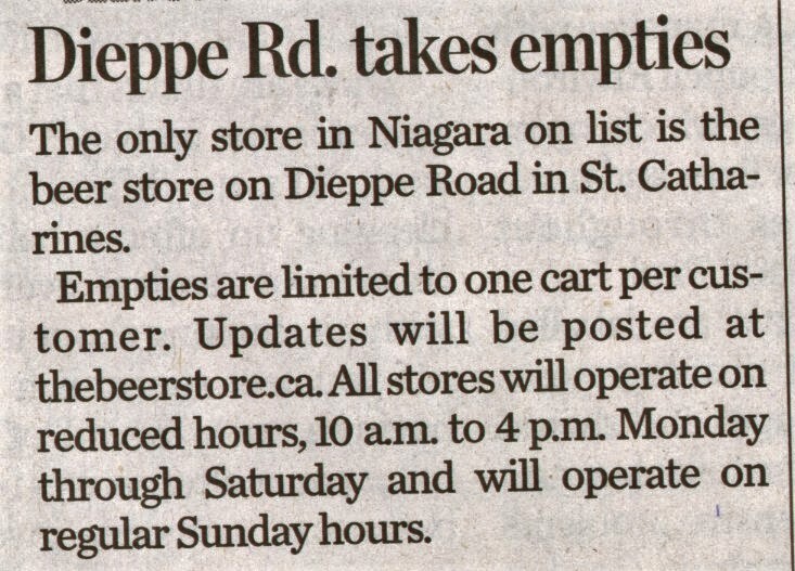 Dieppe Road / Beer store / empties return / no other store / COVID-19 pandemic