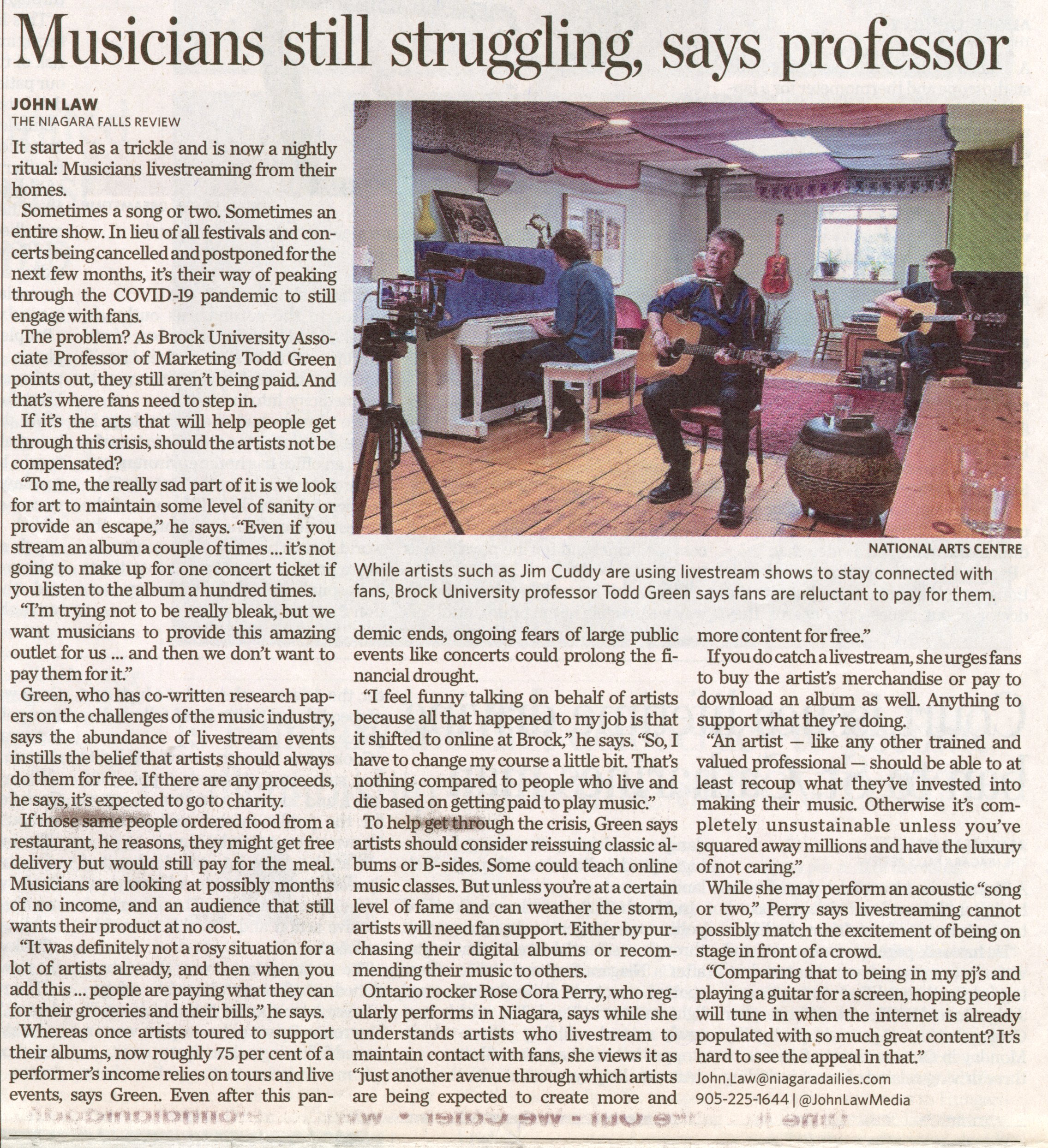 Green, Todd / Brock University Associate Professor / livestream music / COVID-19 pandemic