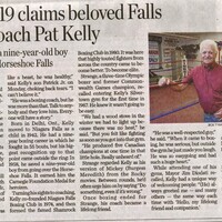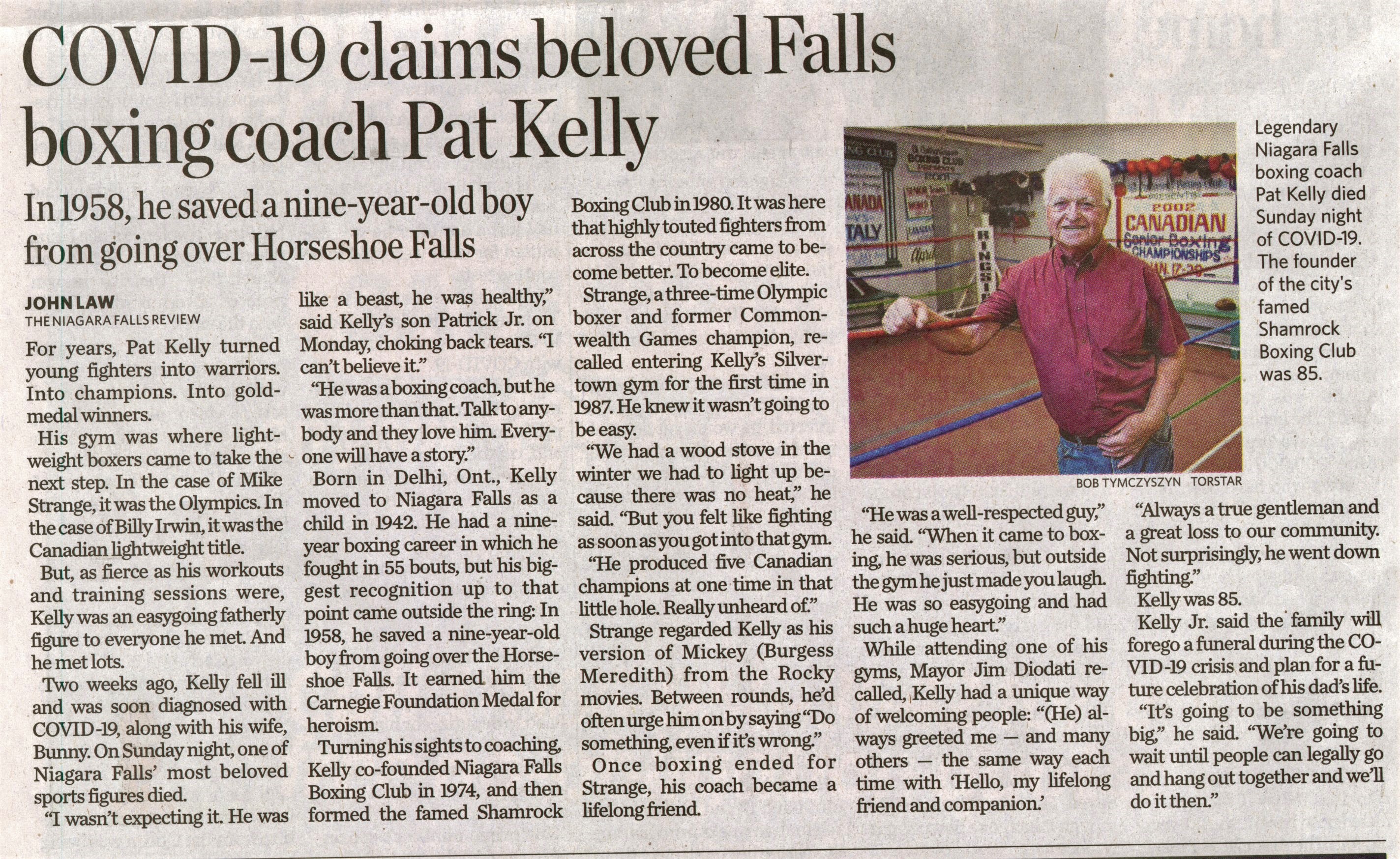 - COVID-19 claims beloved Falls boxing coach Pat Kelly : In 1958, he saved a nine-year-old boy from going over Horseshoe Falls