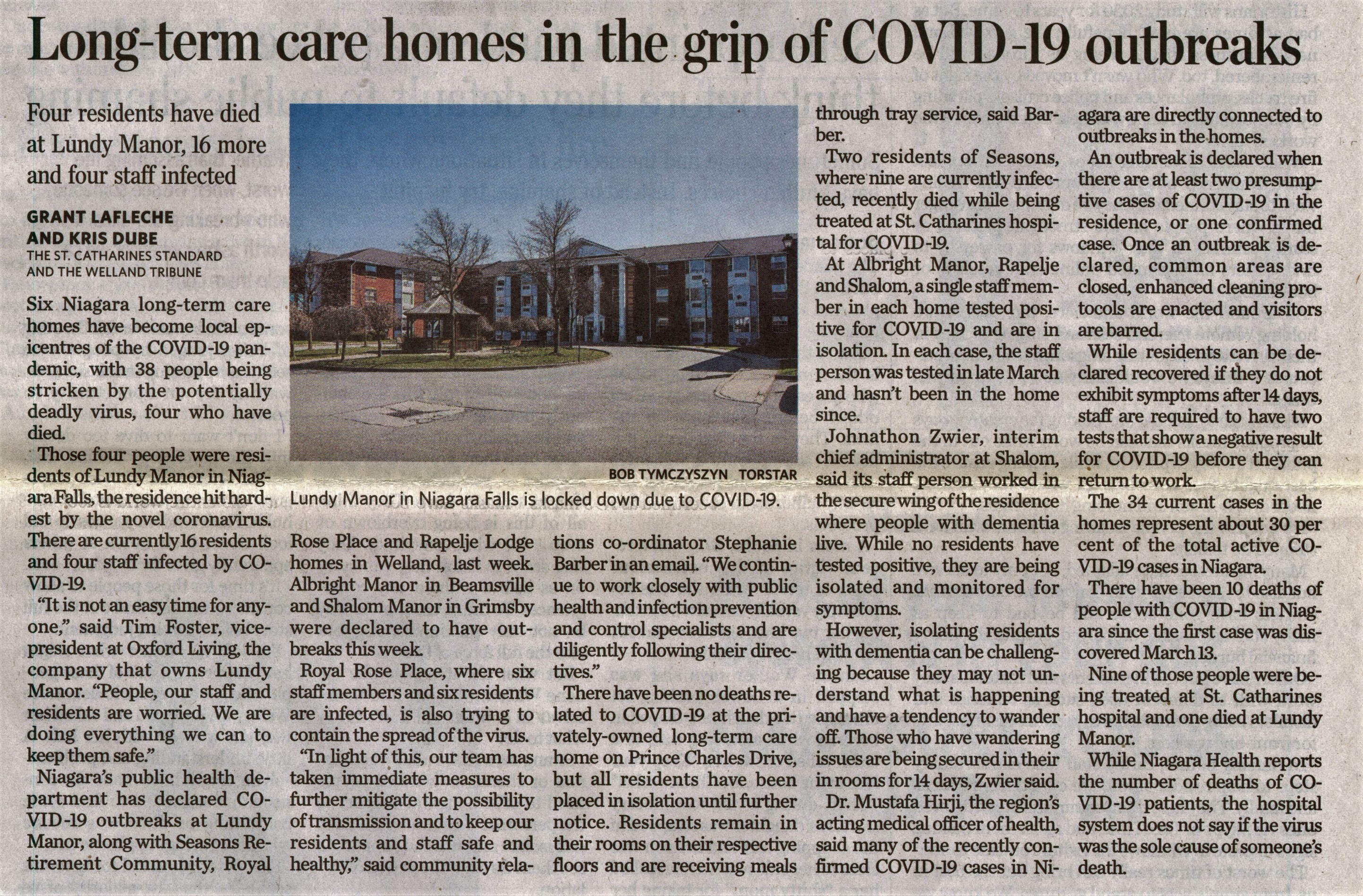 - Lundy Manor / COVID-19 pandemic / Foster, Tim / Niagara Health / Hirji, Dr. Mustafa