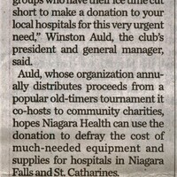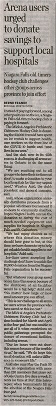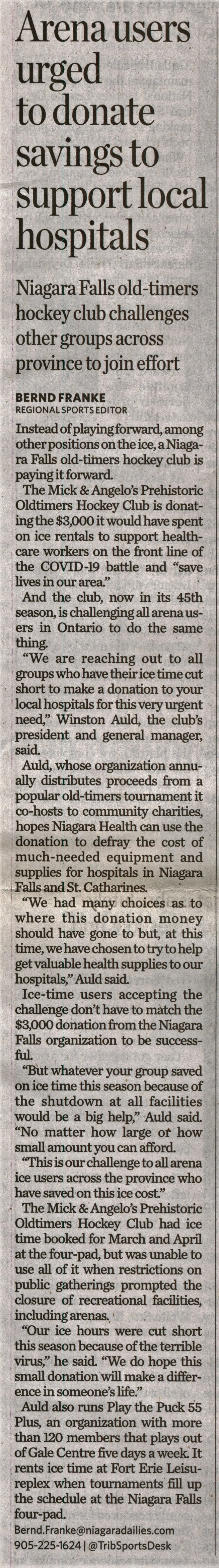 - Arena users urged to donate savings to support local hospitals : Niagara Falls old-timers hockey club challanges other groups across province to join effort