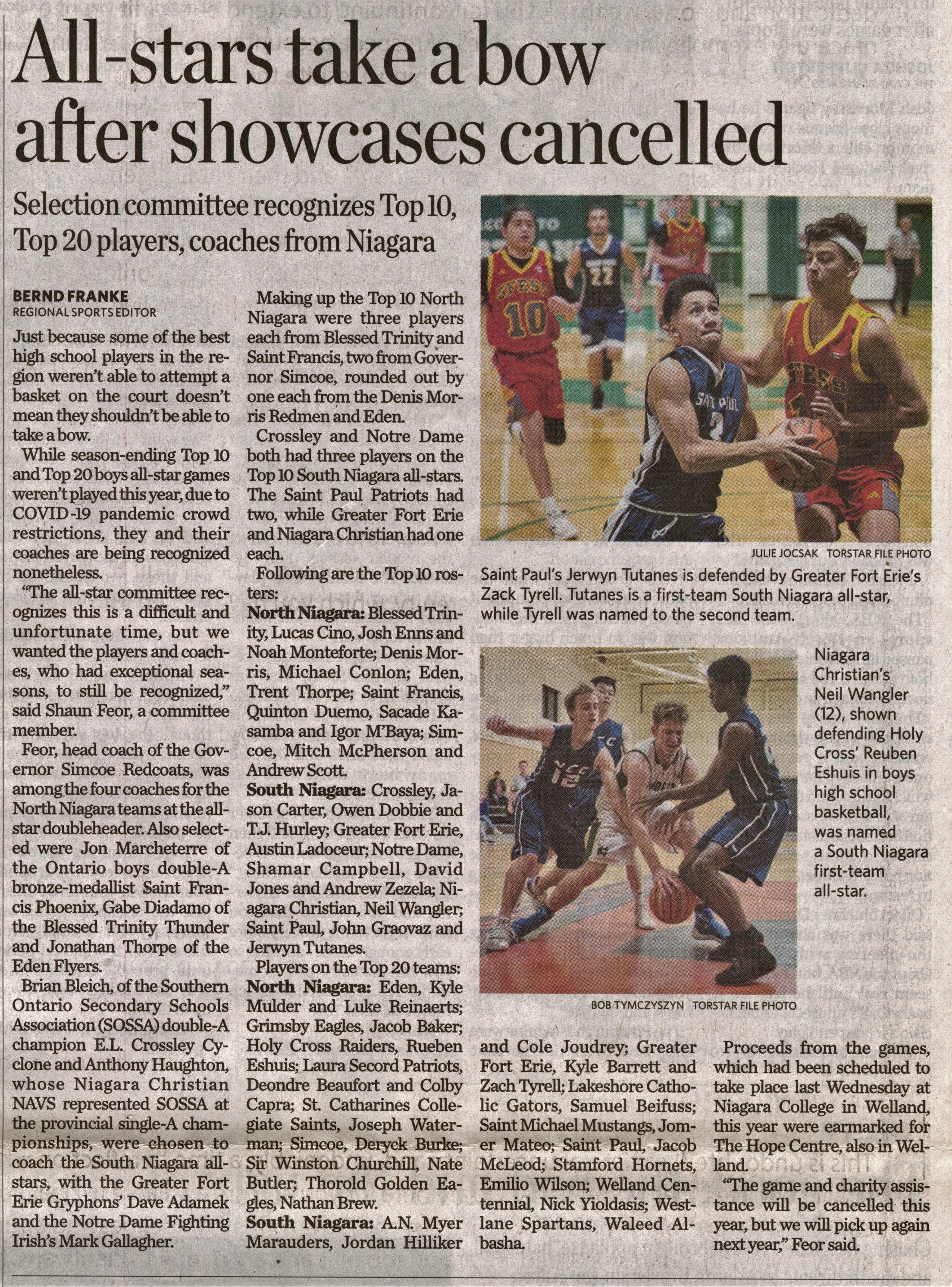 - All-stars take a bow after showcases cancelled : Selection committee recognizes Top 10, Top 20 players, coaches from Niagara