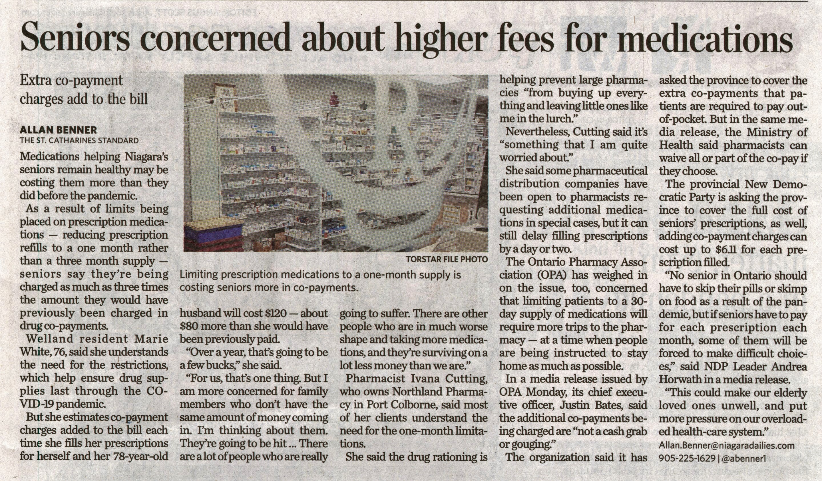 - COVID-19 pandemic / senior citizens / limit on medications / Ontario Pharmacy Association / higher costs