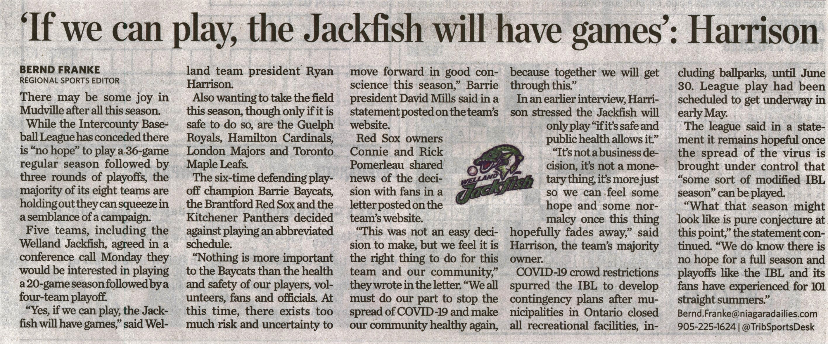 - Intercounty Baseball League / Welland Jackfish / Harrison, Ryan / COVID-19 pandemic / shortened season