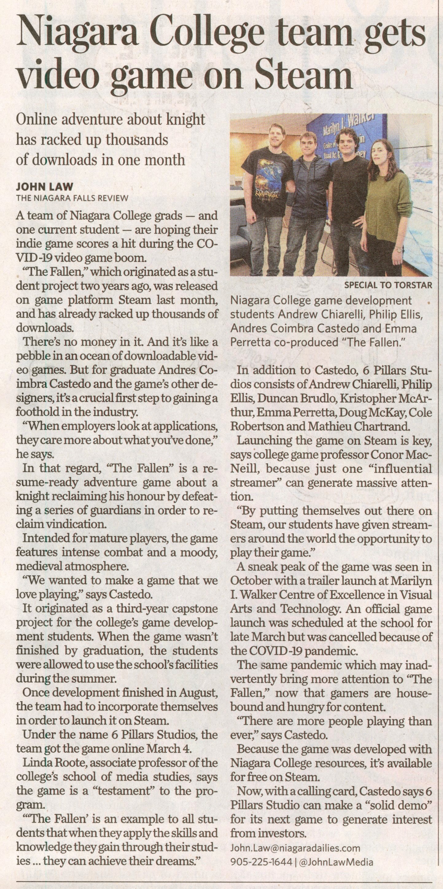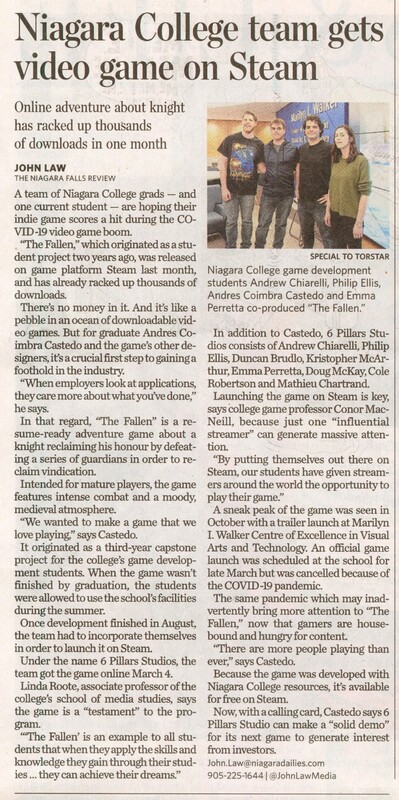 - Niagara College team gets video game on Steam : Online adventure about knight has racked up thousands of downloads in one month