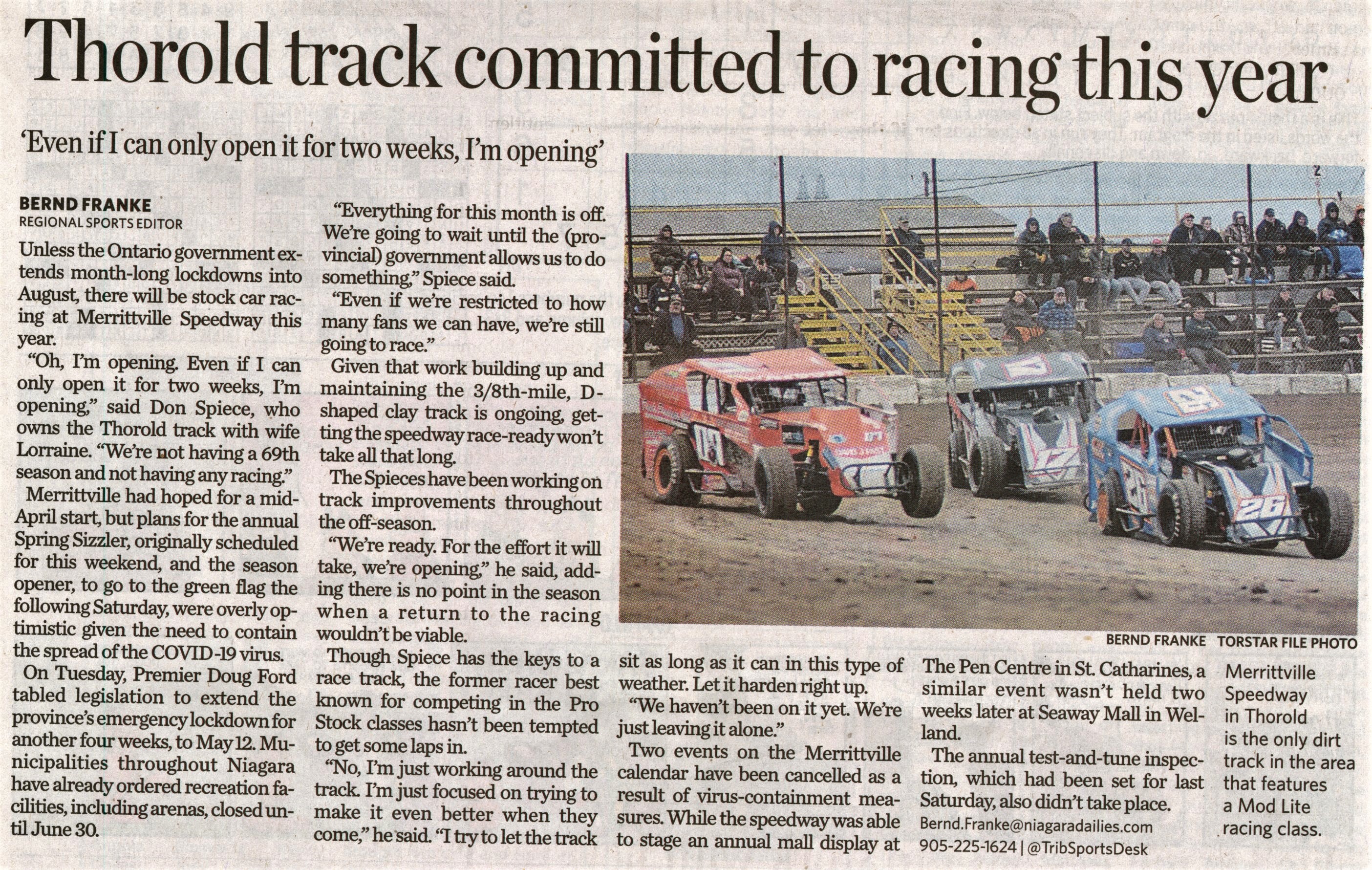 - Thorold track committed to racing this year : 'Even if I can only open it for two weeks, I'm opening'