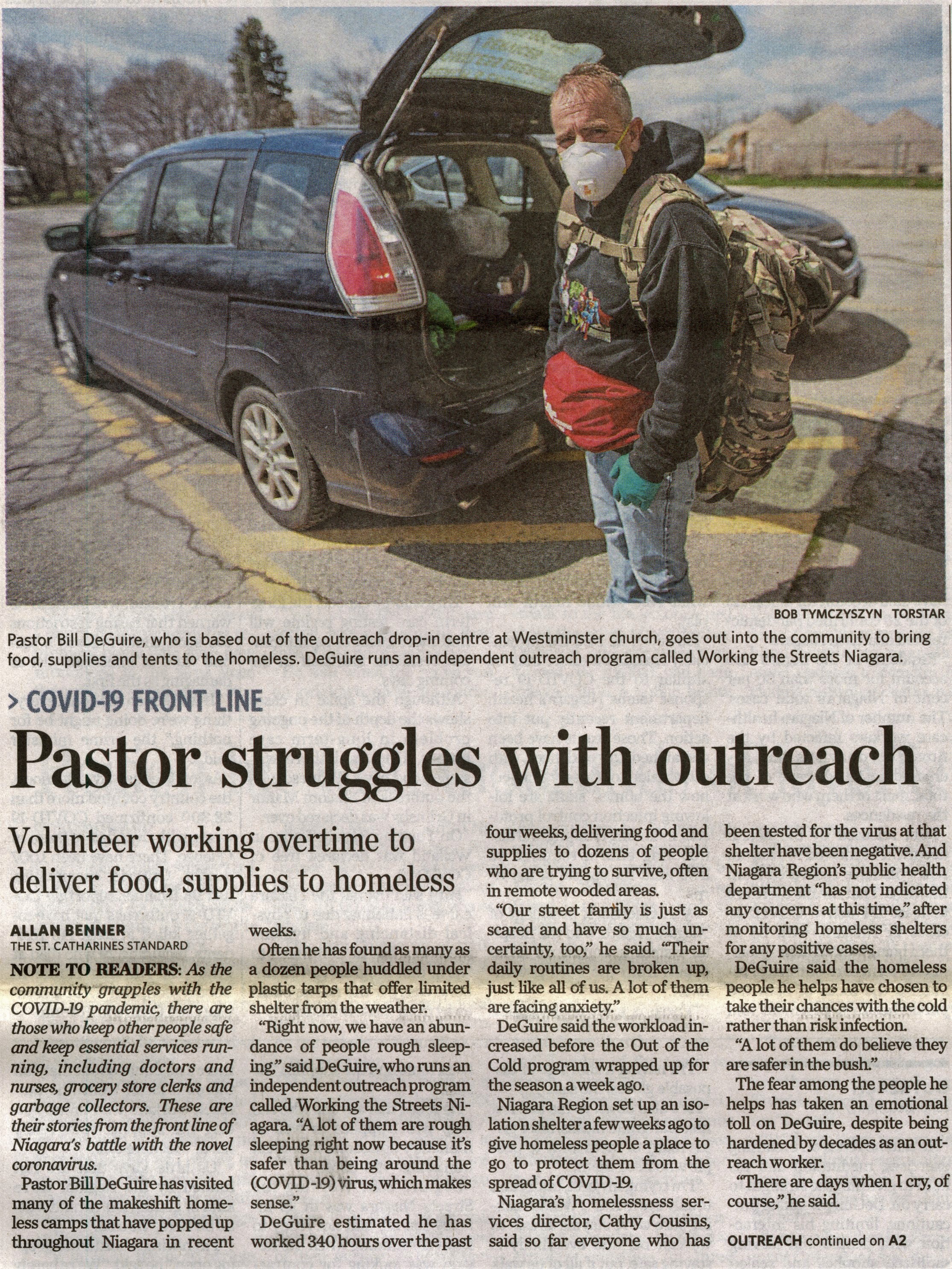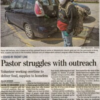 - Pastor struggles with outreach : Volunteer working overtime to deliver food, supplies to homeless