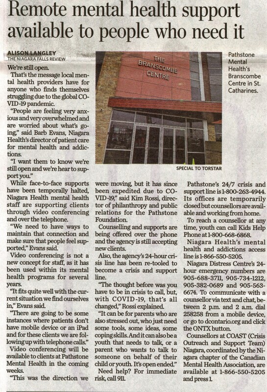 - Pathstone Mental Health / COVID-19 pandemic / Niagara Health / Evans, Barb