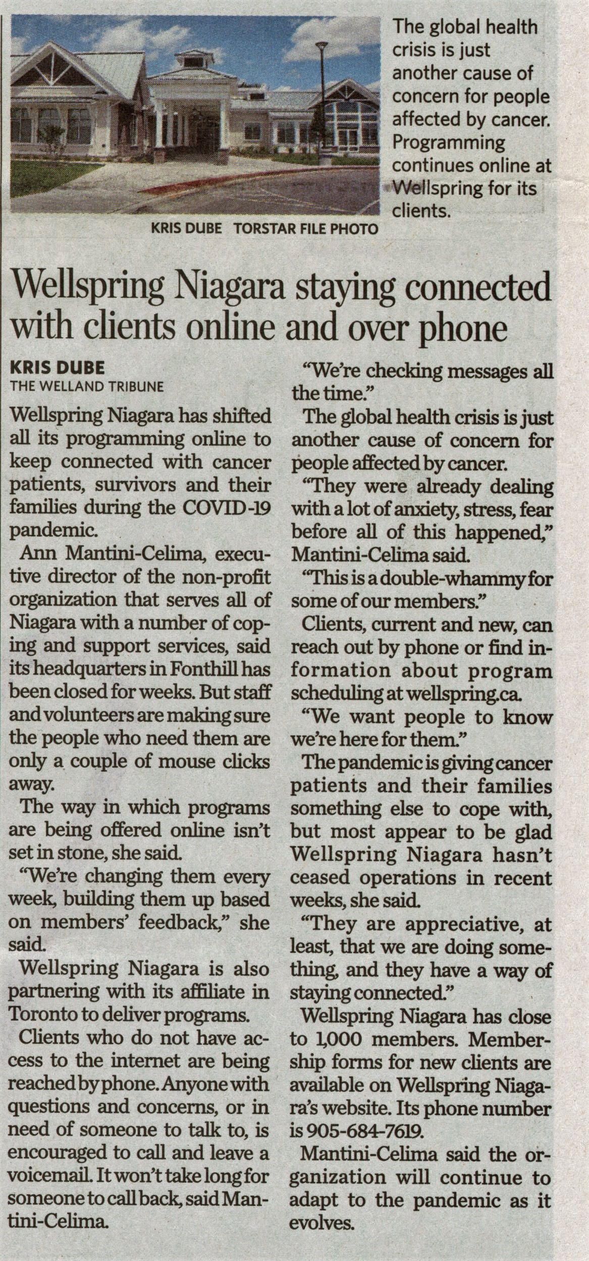 Wellspring Niagara / COVID-19 pandemic / Mantini-Celima, Ann / cancer patients