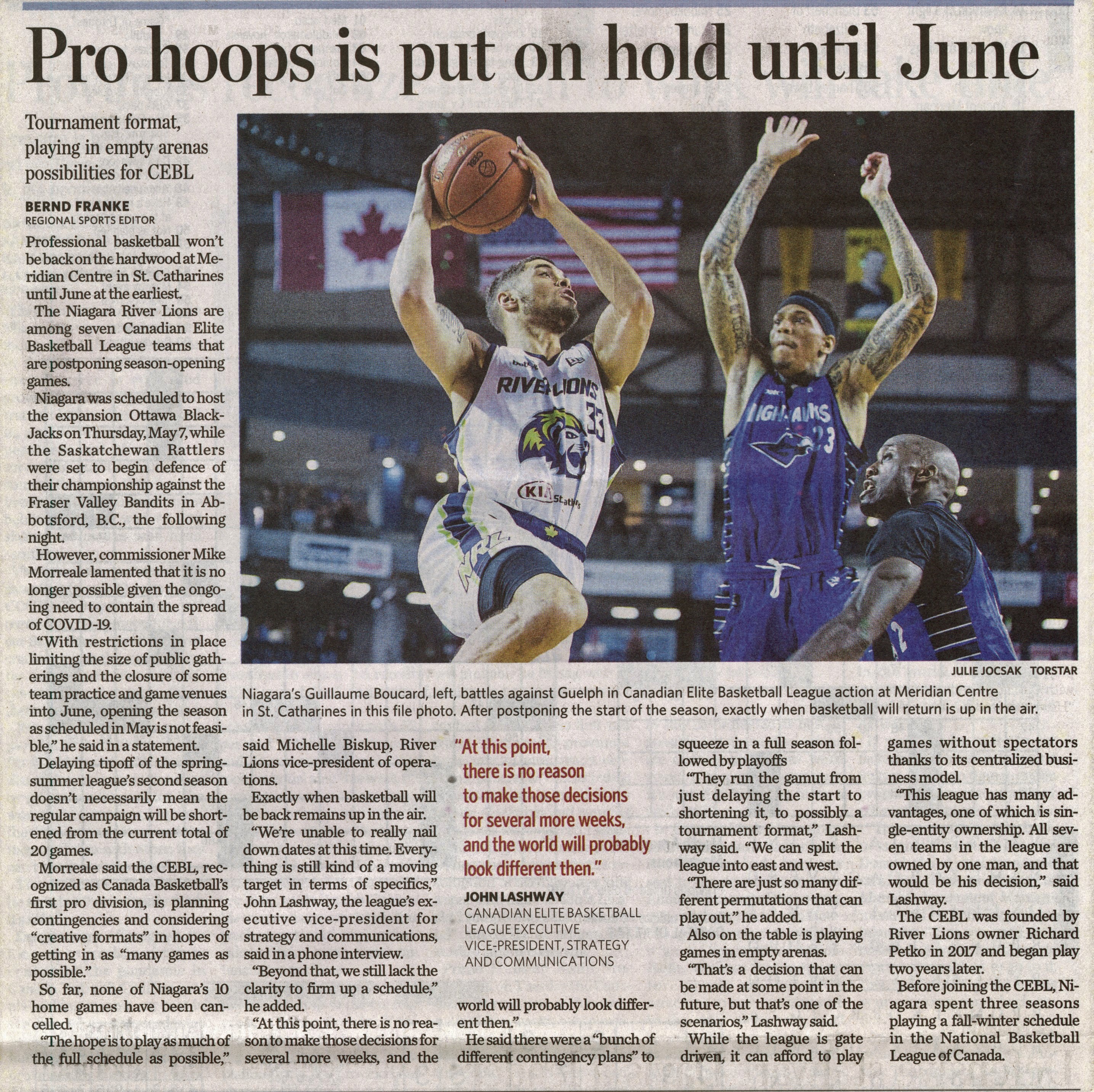 - Pro hoops is put on hold until June : Tournament format, playing in empty arenas possibilities for CEBL