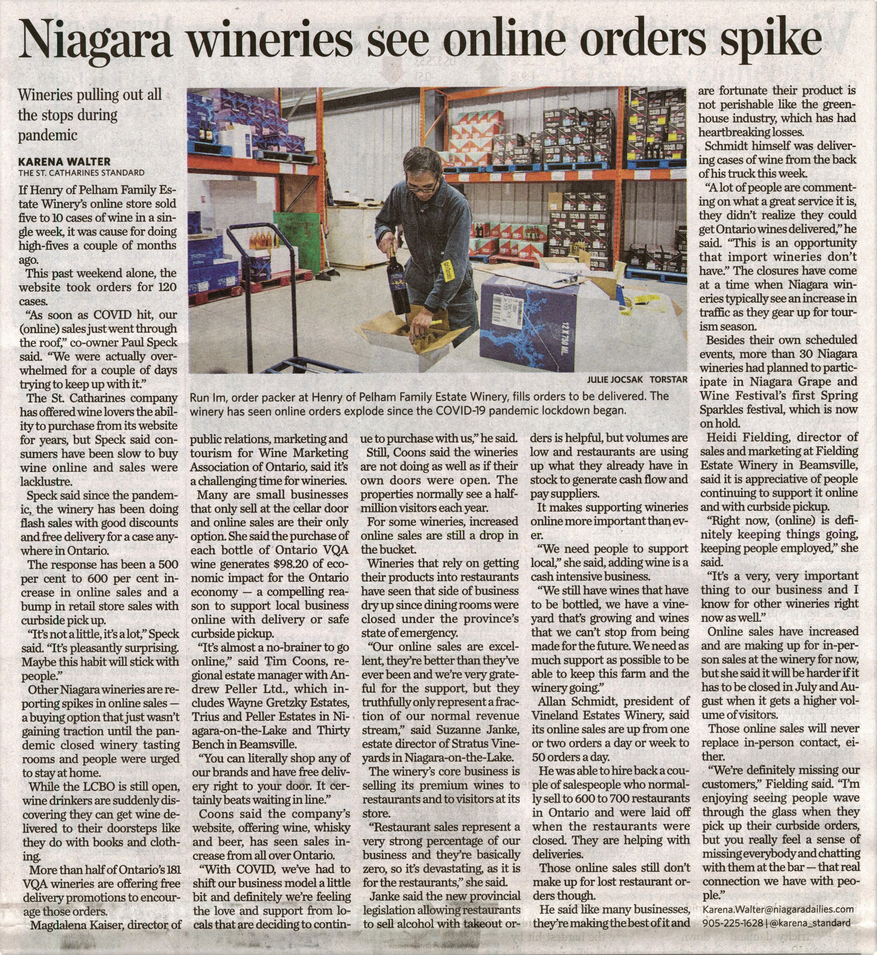 - Niagara wineries see online orders spike : Wineries pulling out all the stops during pandemic