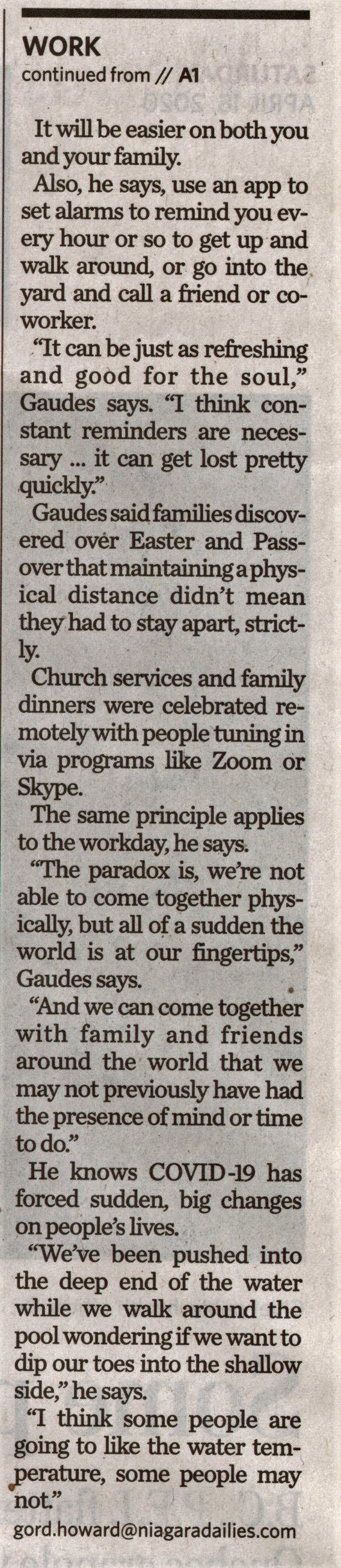 - Gaudes, Andrew / COVID-19 pandemic / work from home / stay connected /