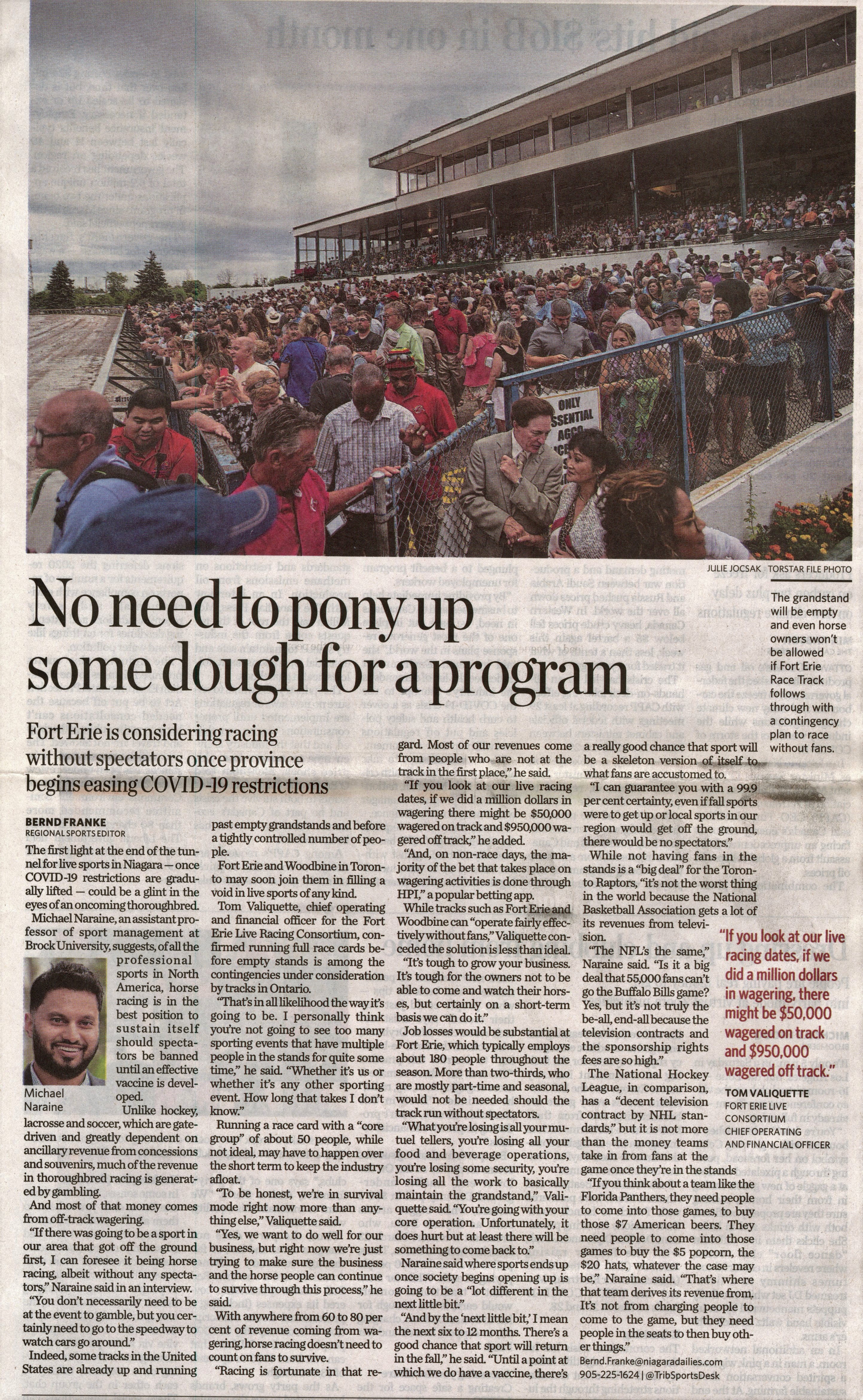 - No need to pony up some dough for a program : Fort Erie is considering racing without spectators once province begins easing COVID-19 restrictions
