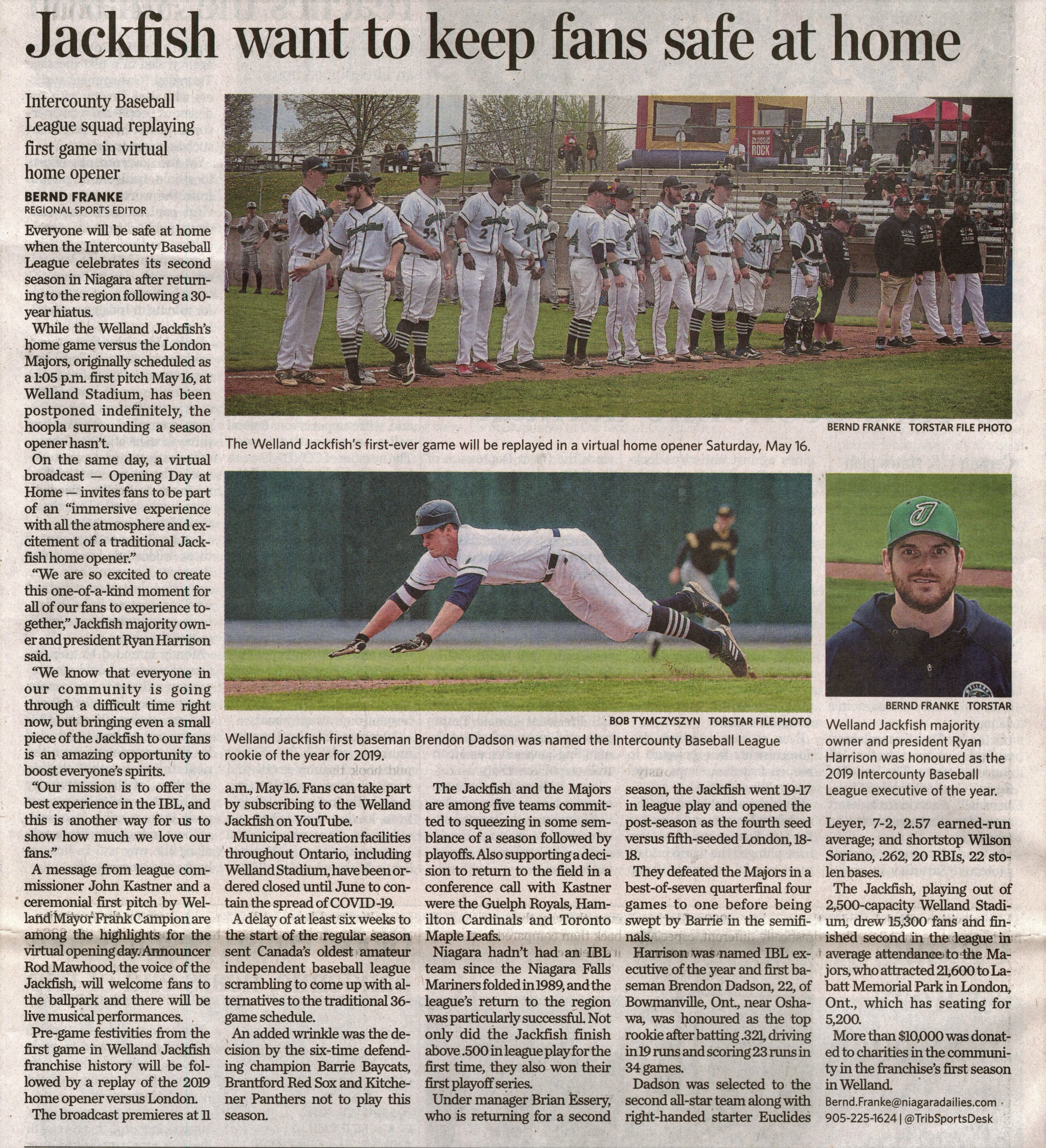 - Jackfish want to keep fans safe at home : Intercounty Baseball League squad replaying first game in virtual home opener
