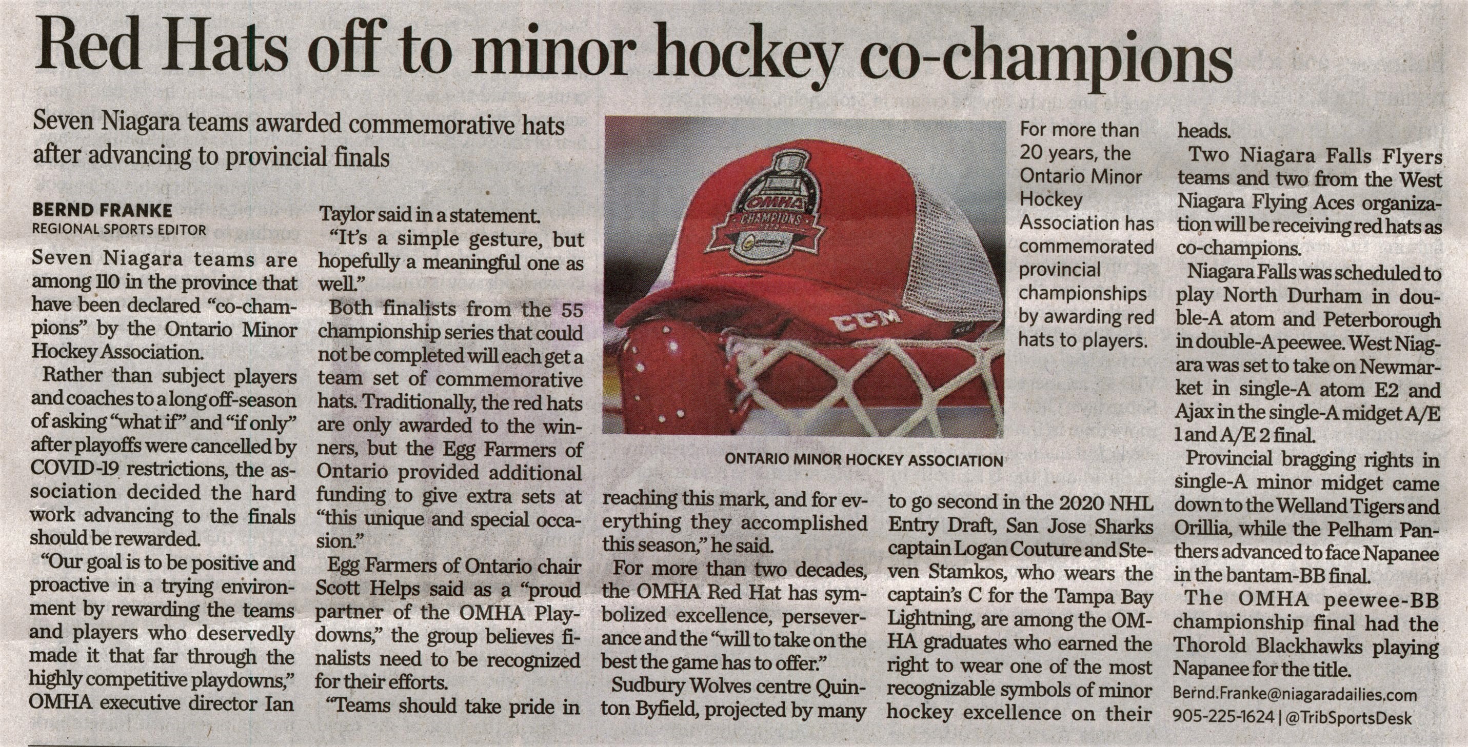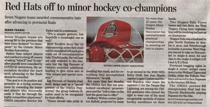 Red Hats off to minor hockey co-champions : Sevin Niagara teams awarded commemorative hats after advancing to provincial finals